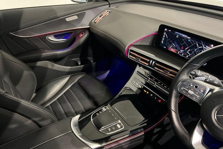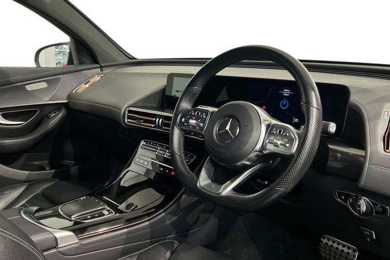 This 2020 Mercedes Benz EQC 400 AMG Line boasts an MOT valid until October 2026, offering peace of mind for the coming years. As an all electric vehicle, it features a substantial 88 kWh battery, providing a maximum range of 245 miles when new. This Four Wheel Drive model, in its AMG Line trim, combines sophisticated styling with advanced technology. Notable features include the KEYLESS GO Comfort Package for effortless access, Blind Spot Assist for enhanced safety, and heated front seats for added comfort. The MULTIBEAM LED headlights ensure excellent visibility, while the Mercedes Benz Sound System delivers an immersive audio experience. Experience the impressive performance of this EQC, with its rapid 0-60mph acceleration in just 5.1 seconds, demonstrating its dynamic capabilities. Charging is convenient, taking approximately 12 hours and 13 minutes for a full charge at home using a 7kW charger, and can reach 80% charge in as little as 45 minutes at a public charging station. These attributes highlight how this Mercedes Benz EQC offers a superior driving experience compared to other vehicles in its class, blending electric efficiency with luxury and performance.