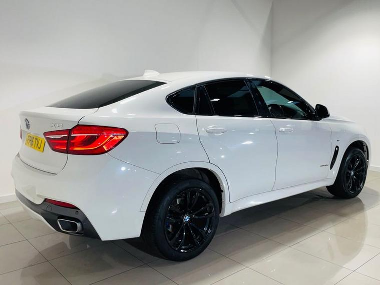 BMW X6 3.0 30d M Sport SUV 5dr Diesel Auto xDrive Euro 6 (s/s) (258 ps) Registration: FP16TVJ | 98, 000 miles | Service History | Finished in Alpine White with Black Dakota Leather Interior A striking and well-specified BMW X6 30d M Sport xDrive, finished in crisp Alpine White with a Black Dakota leather interior. This imposing SUV-coupe combines bold styling, refined comfort and BMWs signature driving dynamics offering powerful performance with everyday practicality Powered by the superb 3.0-litre TwinPower Turbo diesel engine producing 258 PS, paired with the smooth 8-speed automatic gearbox and intelligent xDrive all-wheel-drive system, it delivers effortless acceleration and exceptional long-distance refinement. Fully Euro 6 compliant and ULEZ friendly, this X6 is both capable and efficient Enhanced with Privacy Glass and Gloss Black 20-inch M Sport Alloy Wheels, this example stands out with a strong, athletic presence Key Features 3.0-litre TwinPower Turbo diesel engine (258 PS) 8-speed automatic transmission with paddle shift xDrive intelligent all-wheel-drive system Euro 6 ULEZ compliant M Sport styling with aerodynamic body kit and sport suspension Privacy Glass 20 Gloss Black M Sport Alloy Wheels LED headlights and LED taillights Front and rear parking sensors with visual assist BMW Professional Navigation System with widescreen display DAB digital radio, Bluetooth and USB connectivity Dual-zone automatic climate control Cruise control with brake function Heated front sport seats in Black Dakota leather Electric seat adjustment with driver memory function Power tailgate and keyless start M leather multifunction steering wheel Additional Information AA 128 point inspection passed with report Service History Combined economy around 47+ mpg (depending on driving conditions) 0 to 62 mph in approximately 6.7 seconds Road tax: £240 per year A powerful and stylish BMW X6 30d M Sport xDrive, finished in Alpine White with Gloss Black 20 Alloys and Privacy Glass bold, refined and superbly maintained