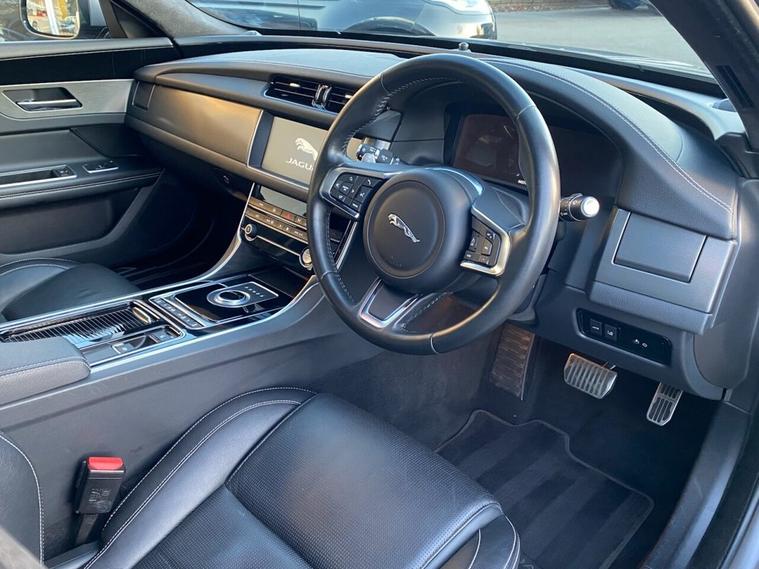 Finished in Eiger Grey with Black Perforated Leather. This XF Chequered Flag has the following specification - 18 Alloy Wheels in Black, Exterior Black Pack, Touch Screen Navigation System, Apple CarPlay, Android Auto, Park Assistance - Rear, Dual Zone Climate Control, Heated Front Seats, LED Headlights, Keyless Entry System, Lane Departure Warning, Cruise Control with Speed Limiter. Supplied with full Jaguar History - Just serviced at Jaguar on 14.11.25 with brake fluid change and a clean MOT.