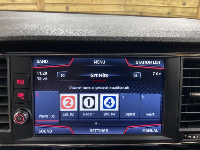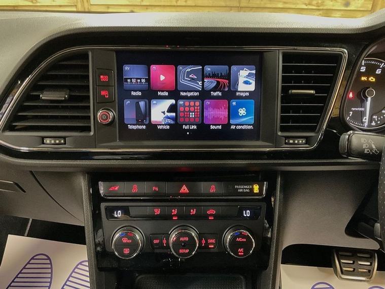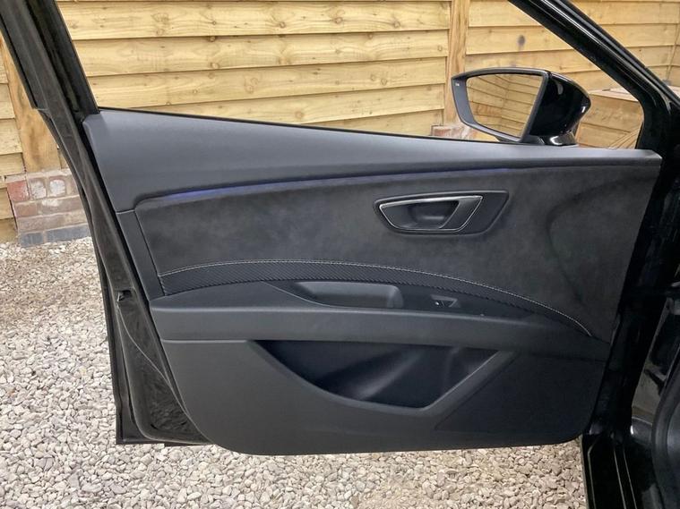 - Flat Bottomed-Perforated Leather Steering Wheel with White Stitching and CUPRA Logo