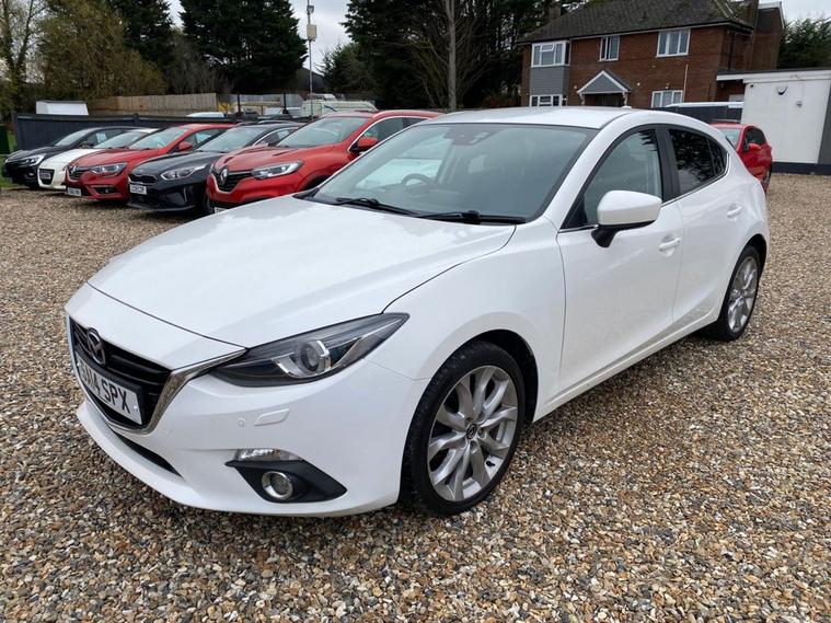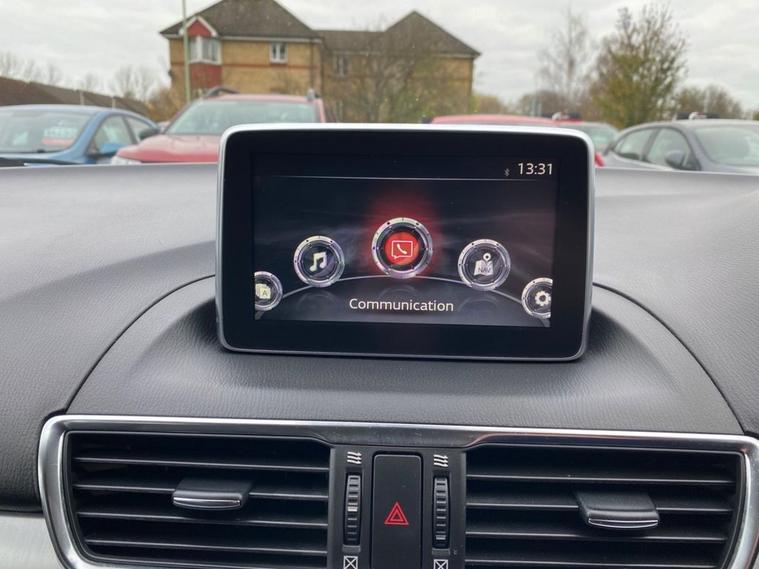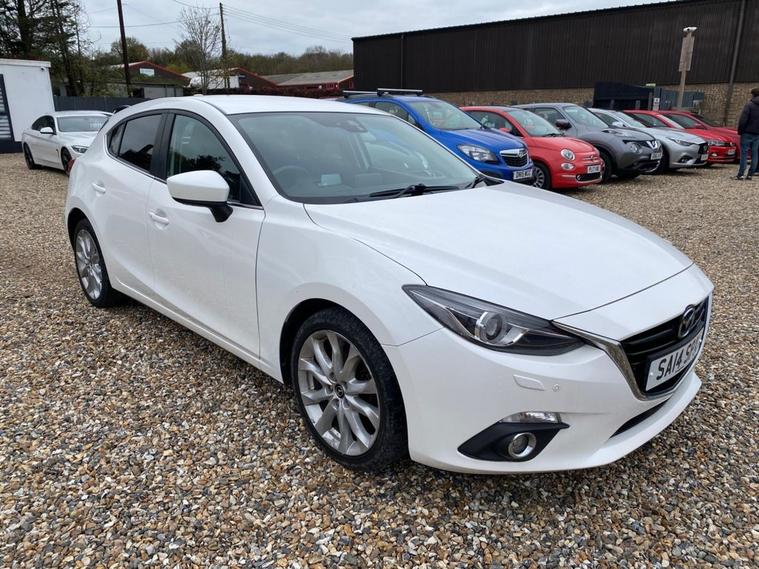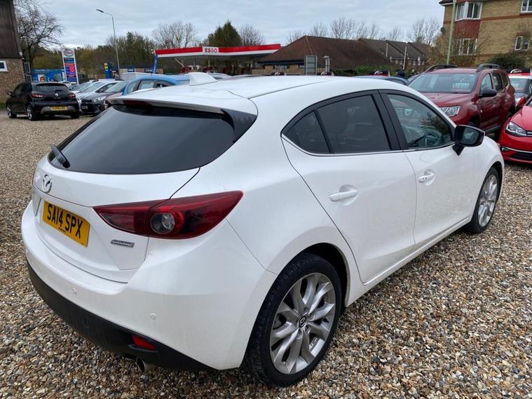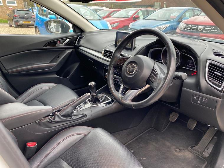 12 MONTHS MOT+7 INCH COLOUR TOUCHSCREEN WHICH FETAURES SATELLITE NAVIGATION SYSTEM+PREMIUM BOSE SURROUND SOUND SYSTEM+BLUETOOTH+DUAL ZONE CLIMTAE CONTROL AIR-CONDIITONING+DUSK-SENSING HEADLIGHTS+HEATED LEATHER SEATS+FRONT & REAR PARKING ASSISTANCE+ARTIC WHITE PAINT+18 INCH ALLOY WHEELS. At Haverhill Car Xchange we would like to offer you our Mazda 3 Skyactiv-G Sport Nav Hatchback which has been finished in an Artic White paint with luxurious Black HEATED Leather Upholstery. Specification Includes a 7 Inch Colour Touchscreen which features Satellite Navigation System, Combined Bluetooth Phone and Audio Streaming System, USB and AUX Connection, iPod Connectivity, Premium BOSE Centrepoint Surround System, Dual Zone Climate Control Air-Conditioning, Cruise Control, Front and Rear Electric Window with One-Touch and Auto Up and Down on Drivers Side, Body Coloured Bumpers/Rear Roof Spoiler and Door Mirrors with Integrated Side Indicators, Dusk-Sensing Automatic Bi-Xenon Headlights, LED Daytime Running Lights, Front Fog Lights with Chrome Surround, Front and Rear Parking Sensors, Heated Leather Seats, Leather Multifunction Steering Wheel, 18 Inch Alloy Wheels, ABS Breaking System, Airbags, Keyless Entry, Alarm, Immobiliser, Remote Central Locking and ISOFIX Anchorage Points for Child Seats.