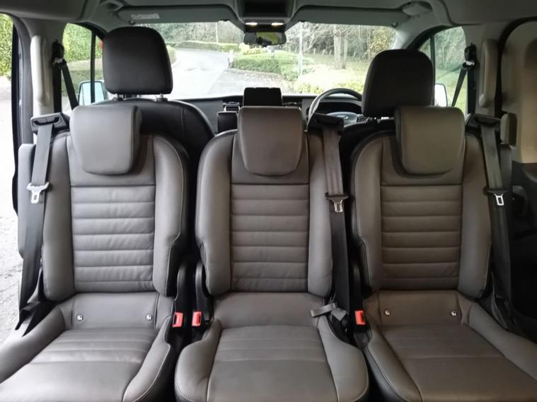 Eight Seats Automatic Gearbox Full Leather Seats Front and Rear Compartment Manual Air Conditioning Cruise Control with Adjustable Speed Limiter 17in Alloy Wheels - 10 Spoke Silver One Owner Ford Service History Active Park Assist Airbag - Drivers Airbag - Front Passengers Airbag - Front Side and Curtain Airbags Anti-Lock Braking System - ABS - with Electronic Brake-Force Distribution Battery - Cold Start -20 Degree C Body Colour Door and Tailgate Handles Bodyside Mouldings - Body Colour Bumpers - Front and Rear Body Colour Carpet Floor Covering in Passenger Compartment Courtesy Light - Footwell Illumination - Side Loading Door Only Courtesy Light - Header-Mounted - Front Maps Lights with Theatre Dimming Courtesy Light - Rear Seat with Theatre Dimming Door Mirrors - Blind Spot Eliminator and Integrated Side Indicator Door Mirrors - Body Colour Skull Caps Door Mirrors - Power-Foldable - Electrically-Operated and Heated Doors - Drivers and Passengers Side - Sliding Glazed Doors and Steps Dual-Circuit Front and Rear Discs with Self-Adjusting Servo-Assistance and ABS EBA - Emergency Brake Assist ESC - Electronic Stability Control Emergency Brake Warning Extra Heavy Duty Alternator - 240AMP Ford Easy-Fuel Capless Refuelling System with Misfuel Inhibit Front Fog Lights with Static Cornering Front Grille - 5 Bar Chrome Surround Colour Front Manual Air Conditioning Front and Rear Parking Sensors Gearshift Knob - Leather-Trimmed Glazed Rear Tailgate with Wash-Wipe Glovebox - with Lockable Lid Halogen Projector Headlight with LED Day Running Lights Hill Start Assist ICE Pack 23 ISOFIX - Child Seat 4 Attachments - Drivers and Passengers Side - 2nd and 3rd Row Load Compartment - DIN 75410 Compliant Tie-down Loops Loadspace Compartment Lights Locks - Audio Mislock Feedback - Audible Signal if a Door is Ajar When Locking Activated Locks - Auto Relocking - Doors Relock after 45 Seconds if no Door is Opened Locks - Configurable 2 - Stage Unlocking Locks - Power Door Deadlocks - Shielded with Strengthened Mountings Mud Flaps - Front Passive Anti-Theft System - PATS - Immobiliser Perimeter Anti Theft Alarm Power Assisted Steering Power Front Windows with One-Shot Up-Down Quickclear Heated Windscreen Rain Sensing Front Wipers and Automatic Headlights Rear Privacy Glass Rear Seats - Manual Recliner Rear Seats - Second Row - Triple Single Seats - Foldable and Detachable Remote Central Locking Roll Stability Control and SideWind Mitigation Running Boards - Door Length Seatbelts - 3 Point Diagonal Inertia Reel - All Seats Shift Indicator Light Side Rear Window Blinds Side Windows - Second Row - Flip Open Steering Column - Rake and Reach Adjustment Steering Wheel - 4-Spoke Leather Trimmed Sunvisors - Illumination of Driver and Passenger Traction Control - TC Trip Computer Tyre Pressure Monitoring System - TPMS Vehicle Identification Number - VIN - Visible Water in Fuel Filter with Sensor