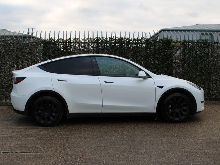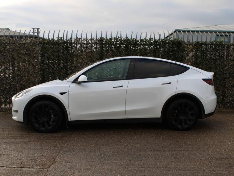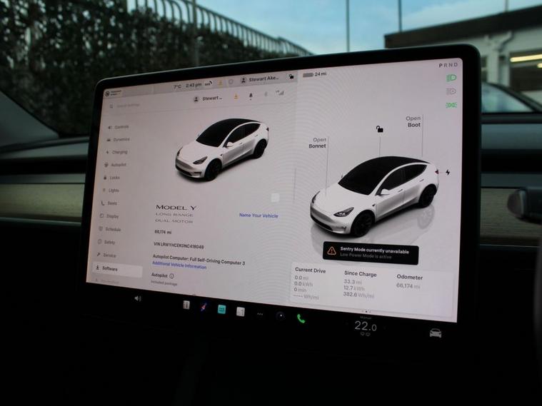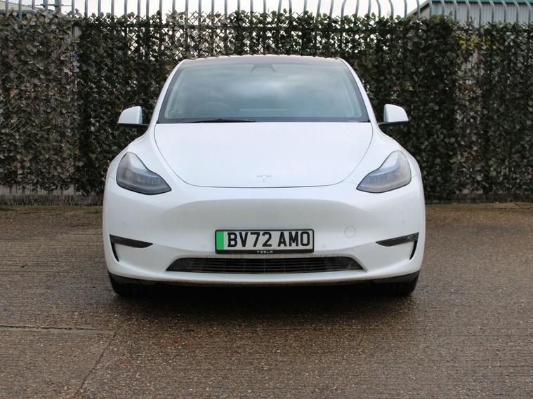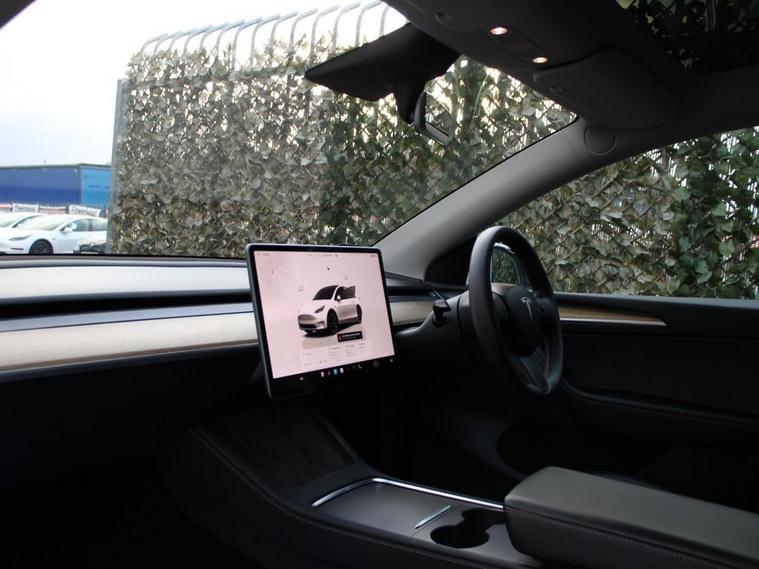 This 2022 Tesla Model Y Long Range is a superb example, having had only one owner since new. As an electric vehicle, it offers a smooth and quiet driving experience, powered by an 85 kWh battery that provides an impressive maximum range of 331 miles. Its Four Wheel Drive drivetrain ensures confident handling in various conditions. Inside, youll find a heated steering wheel for added comfort, a wireless phone charging pad to keep your devices powered, and blind spot monitoring for enhanced safety. The expansive glass roof with ultraviolet and infrared protection floods the cabin with light, creating an airy atmosphere. The performance of this Model Y Long Range is truly remarkable, with acceleration from 0 to 60 mph achieved in just 4.8 seconds, demonstrating its dynamic capabilities. These highlights, such as the swift acceleration and extensive range, indicate how this vehicle excels compared to others in its class. Recharging is convenient, with a full charge at home taking approximately 12 hours using a 7kW charger, and a rapid charge to 80% possible in as little as 25 minutes at a public charging station. Automatic headlights ensure optimal visibility, switching on when needed.