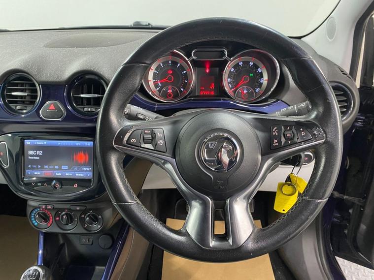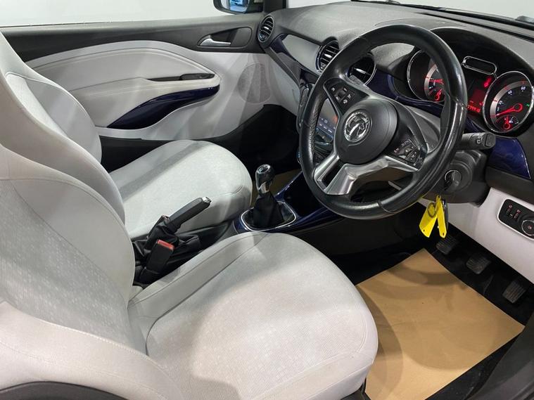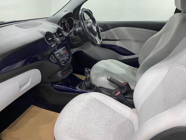 The Adam is one of smartest-looking hatchbacks around and is an ideal choice for the younger driver thanks to its Group 3 Insurance. The Adams are known for their quirky paint schemes and this one looks great fully colour coded in Ocean Blue metallic together with a contrasting white roof / mirror caps and 16 gloss white alloy wheels. Inside are 2-tone sports style seats that are very clean and supportive and the headlining has a full checkerboard panel. You also get a colour touchscreen media system, cruise control, ice cold air conditioning and Bluetooth connectivity with phone and audio controls easily accesible on the leather multi-function steering wheel. The lively 1.2 petrol engine is reliable and economical with Vauxhall suggesting up to 67 mpg achievable on a motorway journey. The rear seats have ISOFIX anchor points for compatible child seats and the City Mode power steering function makes parking in tight spaces an easy task.