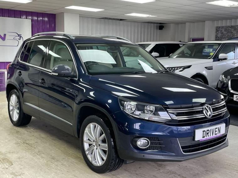 Driven Of York Are Proud To Present This 2015 64 Volkswagen Tiguan 2.0 TDI Tech Match 4WD Presented In Night Blue With Corn Silk Beige Leather Interior. This Stunning Example Features Over £5k Worth Of Optional Extras Such As 18Alloy Wheels, Full Sliding Panoramic Glass Sunroof, Front And Rear Parking Sensors With Park Assist, SAT NAV FM/DAB Radio, Bluetooth And USB Connectivity, CD Player, Air Conditioning With Dual Zone Climate Control, Electric Drivers Seat With Lumbar, Heated Front Seats, Leather Multifunction Steering Wheel, Automatic Gearbox, Ski Hatch, Space Saver Spare Wheel, This Amazing Example Also Comes With FULL Service History! With 12 Total Services 7 By A Main Dealer. Reserve Now For Just £149