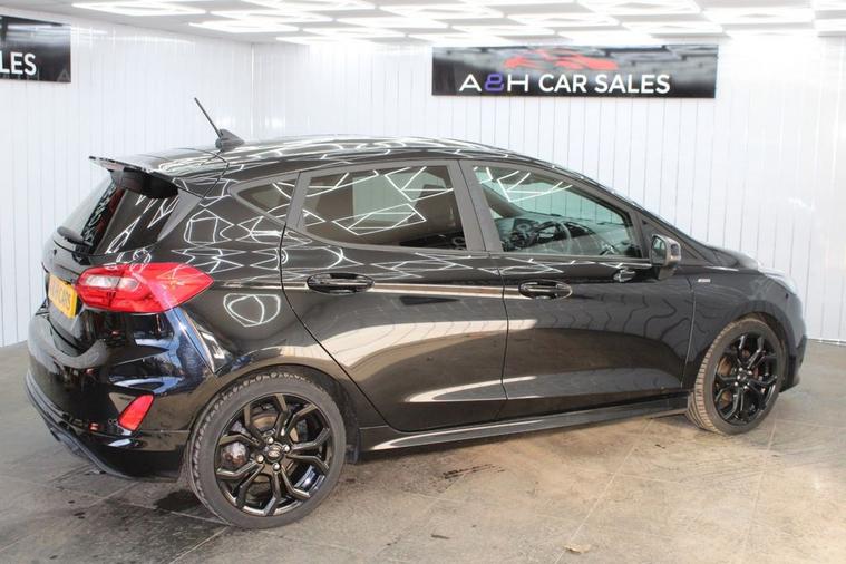 With a full service history and an MOT valid until November 2026, this 2019 Ford Fiesta T ST Line X offers excellent provenance. This Euro 6 compliant 1.0L petrol model comes with a clear vehicle history check and benefits from a 6 month warranty for your peace of mind. Inside, you will find the Ford Navigation System with Ford SYNC 3, offering seamless integration with Apple CarPlay and Android Auto, alongside FordPass Connect. The ST Line X trim also includes a NCAP Pack with automatic headlights, and Electronic Automatic Temperature Control for a comfortable driving experience. This Ford Fiesta stands out with its impressive acceleration, reaching 0-60mph in just 10.0 seconds, demonstrating its responsive performance. Furthermore, its low CO2 emissions highlight its efficiency compared to other vehicles in its class. The automatic on-off and highbeam headlights provide enhanced visibility and convenience, making this Fiesta a well equipped and appealing choice. Fantastic finance rates available in-house arranged within minutes and avilable to drive away the very same day!