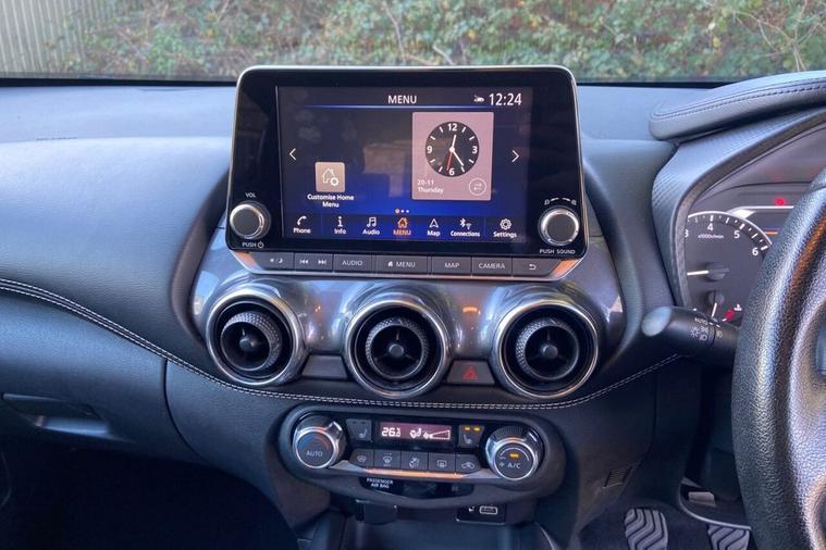 This 2022 Nissan Juke DIG-T Tekna offers excellent peace of mind with its MOT valid until September 2026 and a clear vehicle history check. This stylish hatchback is equipped with a 1.0 litre Euro 6 compliant petrol engine, offering an impressive fuel economy of 48 miles per gallon. The Tekna trim level comes with a host of desirable features, including the Comfort Pack which provides climate control, and rear parking sensors with parking assistance for easier manoeuvring. Further enhancing your driving experience, the Advanced Safety Shield Pack includes Blind Spot Assistance and Adaptive Cruise Control, alongside a 360 degree camera system for comprehensive parking assistance. Connectivity is seamless with USB AUX socket input and Bluetooth, while the Intelligent Key system allows for keyless entry and walk away lock and approach unlock functions. The Jukes low CO2 emissions also indicate it is a more environmentally conscious choice compared to many similar vehicles.