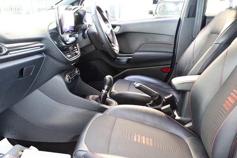 FORD FIESTA 1.0T ECOBOOST ST-LINE X EDITION FINISHED IN DESERT ISLAND BLUE AND COMPLIMENTED WITH PART LEATHER INTERIOR, THIS VEHICLE HAS BEEN VERY WELL CARED FOR AND MAINTAINED WITH DOCUMENTED SERVICES CARRIED OUT AT 8352, 26909 MILES PLUS COMPREHENSIVE PRE DELIVERY HEALTH CHECK COMPLETED PRIOR TO SALE AT 39442 MILES. KEY FEATURES INCLUDE ALLOY WHEELS, AIR CONDITIONING, AUTO RAIN SENSITIVE WIPERS, AUTOMATIC REAR VIEW DIMMING MIRROR, B&O PLAY PREMIUM AUDIO, FORD SYNC 3 SATALLITE NAVIGATION, BODY COLOURED BUMPERS, CRUISE CONTROL, POWER FOLDING HEATED DOOR MIRRORS, FRONT AND REAR ELECTRIC WINDOWS, CAPLESS REFUEL, REAR PARKING SENSORS, HEATED WINDSCREEN, PRIVACY GLASS, SELECTABLE DRIVING MODES, USB CONNECTOR, SPORT PEDALS, ST BODY STYLING, ALARM PLUS MUCH MORE. COMMITTED TO AA CARS STANDARDS: 3 MONTHS OR 3000 MILES WARRANTY INCLUDED WITH AN OPTION TO UPGRADE: 12 MONTHS AA BREAKDOWN RECOVERY INCLUDED: £75.00 CONTRIBUTION TOWARDS YOUR NEXT SERVICE/MOT AT ANY AA CARS STANDARD APPROVED WORKSHOP: WE STAND BY THE QUALITY OF OUR VEHICLES. WITH THE PURCHASE OF THIS VEHICLE, YOU WILL RECEIVE 3 MONTHS OR 3000 WARRANTY, 12 MONTHS AA BREAKDOWN RECOVERY, GIVING YOU ADDITIONAL PEACE OF MIND AND PROTECTION. ALL OUR CARS COME WITH AT LEAST 6 MONTHS MOT AND PRE SALE HEALTH CHECK AND ROAD TEST. OUR PROFESSIONAL TEAM ENSURES YOUR VEHICLE STAYS IN TOP CONDITION, AND YOU ENJOY A HASSLE-FREE OWNERSHIP EXPERIENCE. 4.6 STARS ON GOOGLE WITH OVER 550 REVIEWS: JOIN OUR COMMUNITY OF SATISFIED CUSTOMERS! OUR DEALERSHIP IS PROUD TO HAVE A 4.6 STAR RATING ON GOOGLE, BACKED BY OVER 550 POSITIVE REVIEWS. WE ARE COMMITTED TO PROVIDING EXCELLENT SERVICE AND HIGH-QUALITY VEHICLES. This Vehicle Comes Equipped with High Specification, Which Includes: -