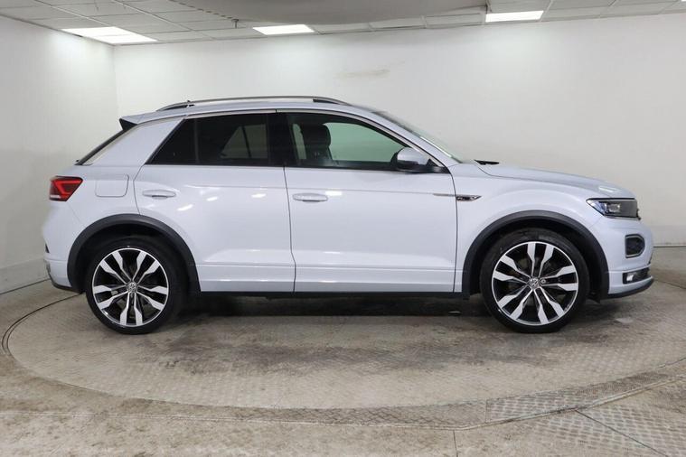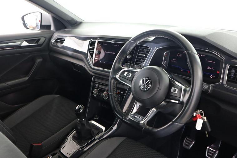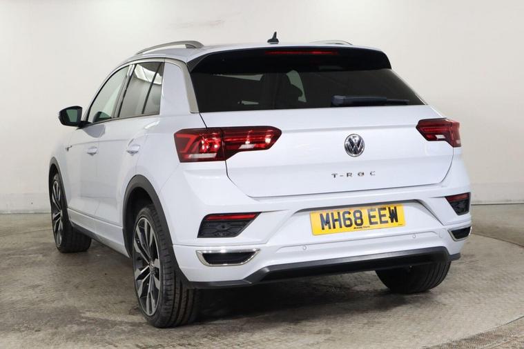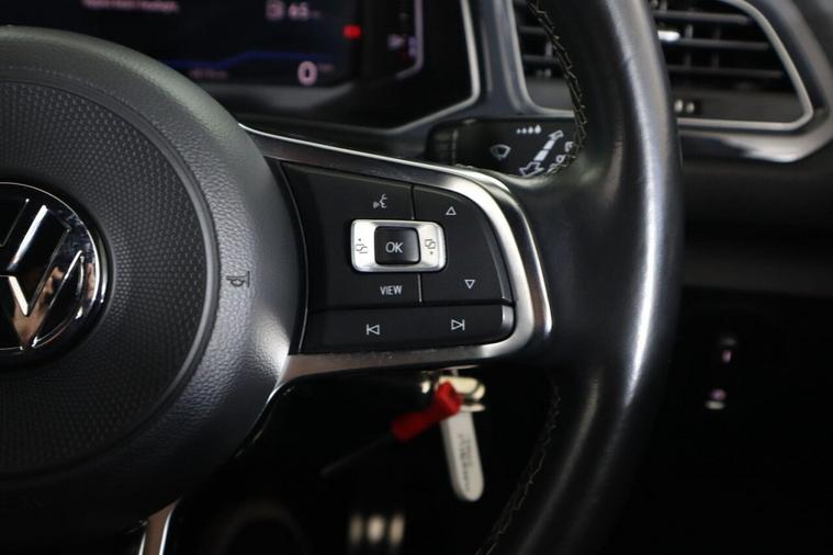 The Volkswagen T-Roc TDI R-Line is a 2019 model that boasts a 1.6L Diesel Engine, meeting the stringent Euro 6 emission standards. This trim level comes equipped with a range of impressive features, including Climate Control - 2Zone Electronic Air Conditioning with Automatic Air Recirculation and Allergen Filter, ensuring a comfortable and healthy driving experience. The Composition Media System with Bluetooth connectivity keeps you connected on the move, while the Dusk Sensor automatically adjusts the headlights for optimal visibility. Additionally, the Adaptive Cruise Control and LED Headlights provide enhanced safety and visibility on the road. This T-Roc TDI R-Line has been well cared for, with a low mileage of 48, 195 miles for its age, making it a great option for those looking for a reliable and affordable vehicle. Its low insurance group rating also makes it an attractive choice for those on a budget. With a fuel economy of up to 50 mpg, this vehicle is perfect for those who want to save on fuel costs. Its impressive acceleration of 0-62mph in just 8.6 seconds also makes it a great option for those who enjoy a spirited drive. Overall, this Volkswagen T-Roc TDI R-Line is a great all-rounder, offering a perfect blend of comfort, safety, and performance.