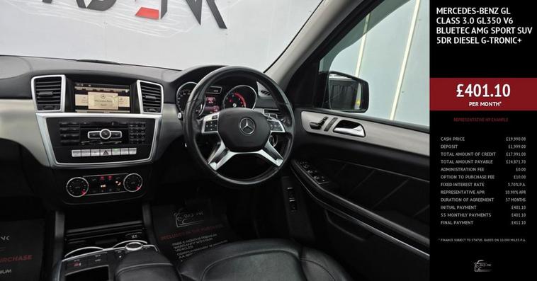 Luxurious and spacious Mercedes-Benz GL350 V6 with desirable extras including the Parking Package, Panoramic Glass Sunroof, and 21 AMG Matt Black Alloys. Equipped with AIRMATIC Suspension, COMAND Online, Bi-Xenon Adaptive Headlights, and full electric seats. Seven-seat practicality, premium comfort, and strong V6 performance make this the ideal family SUV with true Mercedes refinement.