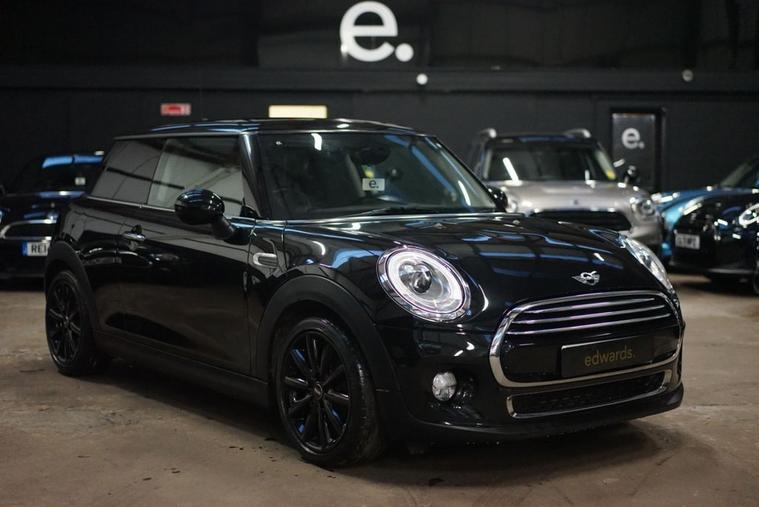 A superb MINI 1.5 Cooper Auto in Midnight Black Metallic with Carbon Black Interior Trim which has covered 32k miles. Heated Seats, Sat Nav, 17inch Cosmos Wheels and LED Headlights. Service History