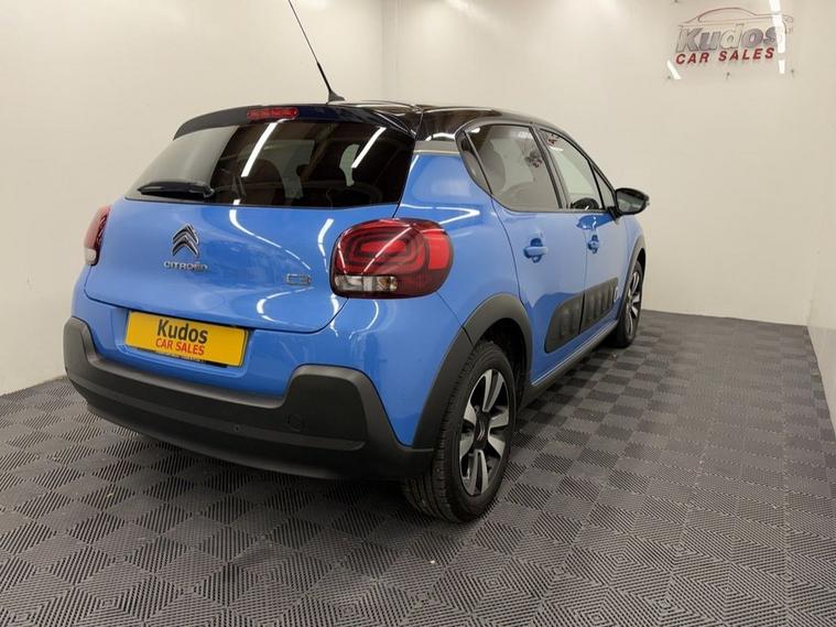 2019 CITROEN C3 1.2 PureTech 110 Flair 5dr - FINISHED IN STUNNING COBALT BLUE WITH ONYX BLACK ROOF. NO DEPOSIT FINANCE AVAILABLE FROM ONLY £147 per mth. 6 MTH WARRANTY INCLUDED. EACH VEHICLE COMES WITH A FREE HPI CLEAR REPORT AND 1 YEAR AA BREAKDOWN COVER. FULL SERVICE HISTORY [ 7 STAMPS ] LAST SERVICED @ 74744 MILES. 76000 MILES. MOT UNTIL 29/09/2026 . **ULEZ COMPLIANT** GREAT SPEC: REAR PARKING SENSORS, REAR PARKING CAMERA, CRUISE CONTROL, SAT NAV INTEGRATION, AIRCON, LED DAYTIME LIGHTS, AUTO LIGHTS, DAB RADIO, BLUETOOTH HANDS FREE, ELEC FRONT AND REAR WINDOWS AND ELEC MIRRORS, TRACTION CONTROL, USB AND AUX INPUT, ISOFIX REAR, 16 ALLOY WHEELS. PREVIOUS NON SMOKER. FINANCE PACKAGES - With a number of lenders on board i am able to offer Finance to suit individual circumstances, including Sub Prime. All CARS ARE HPI CHECKED AND CLEAR. WARRANTY - At KUDOS CAR SALES every vehicle comes with a FREE 6 MONTH Warranty. Any repairs under warranty can be carried out at your local garage - Extended warranty available on request at extra cost. ***ALL PART EXCHANGES CONSIDERED***