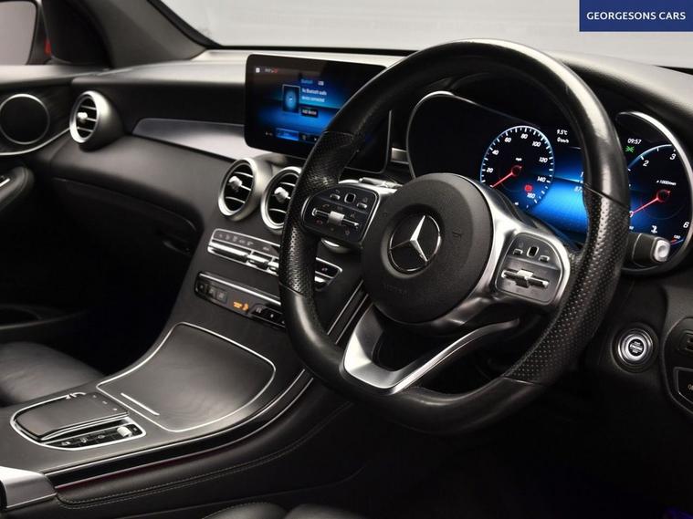 The Mercedes-Benz GLC 300d AMG Line (Premium) combines a refined 2.0-litre turbo diesel engine with 245hp, delivering 0-62mph in 6.5 seconds and up to 47.9mpg in this all-wheel-drive 4MATIC setup with a smooth 9-speed G-Tronic+ automatic transmission. The Premium AMG Line trim brings sporty luxury with 19-inch alloys, LED headlights and a high-grade interior. With one owner and five services, this GLC is in excellent condition. Navigate effortlessly with integrated satellite navigation, Apple CarPlay, Bluetooth and DAB radio. Parking is a breeze thanks to the reverse camera and parking sensors. Stay comfortable with dual-zone climate control and heated seats. Cruise control with speed limiter, blind spot assist, start-stop and selectable drive modes deliver refined performance and safety. Partial electric seats add everyday convenience. T