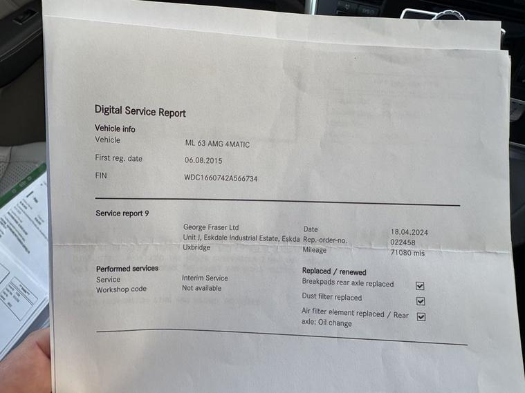 The Mercedes-Benz M Class ML63 V8 AMG is a 2015 model, boasting a powerful 5.5L Petrol Engine and Four Wheel Drive drivetrain. This AMG variant is part of the M Class range, known for its exceptional performance and handling. The vehicles Euro 6 emission class ensures it meets the latest environmental standards. A clear vehicle history check provides peace of mind for potential buyers. The ML63 V8 AMG is equipped with a range of impressive features, including LED Daytime Running Lights, rear and front parking sensors with parking assistance, heated front seats, and bi-xenon headlights with xenon technology. This Mercedes-Benz M Class ML63 V8 AMG is a force to be reckoned with, accelerating from 0-60mph in just 4.8 seconds. This impressive acceleration is a testament to the vehicles exceptional performance capabilities, making it stand out from similar vehicles in its class. With a towing capacity of 3050 kg, its also well-suited for those who need a vehicle that can handle heavy loads. Whether youre looking for a vehicle that combines power and practicality, the ML63 V8 AMG is certainly worth considering.