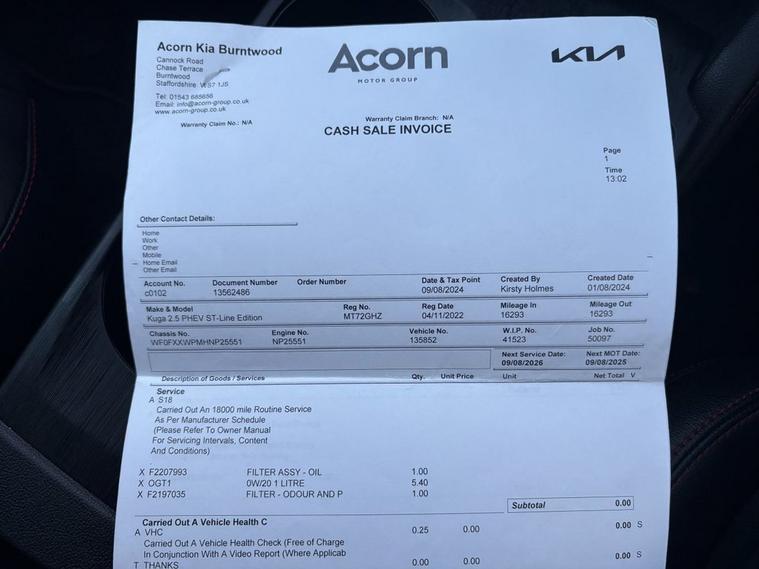 This 2022 Ford Kuga ST Line offers a clear vehicle history, providing peace of mind for its next owner. Powered by an efficient 2.5 litre petrol plug in hybrid engine and meeting Euro 6 emission standards, this ST Line trim model combines modern technology with practicality. Key features include the Ford Key Free System for effortless keyless entry and start, and Dual Zone Electronic Automatic Temperature Control for personalised cabin comfort. Enjoy your journeys with the impressive Bang and Olufsen Premium Audio System, and navigate with ease thanks to front and rear parking sensors. The automatic on-off headlights add further convenience to your driving experience. The Kuga ST Line stands out with its sophisticated blend of performance and comfort. The plug in hybrid technology offers an economical and environmentally conscious driving experience, setting it apart from conventional petrol or diesel models. The inclusion of the Bang and Olufsen sound system elevates the in car entertainment, while the DEATC ensures a consistently pleasant cabin temperature for all occupants. These carefully selected features demonstrate a commitment to a premium driving experience, making this Ford Kuga a compelling choice for those seeking advanced technology and refined comfort.