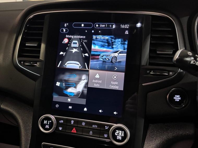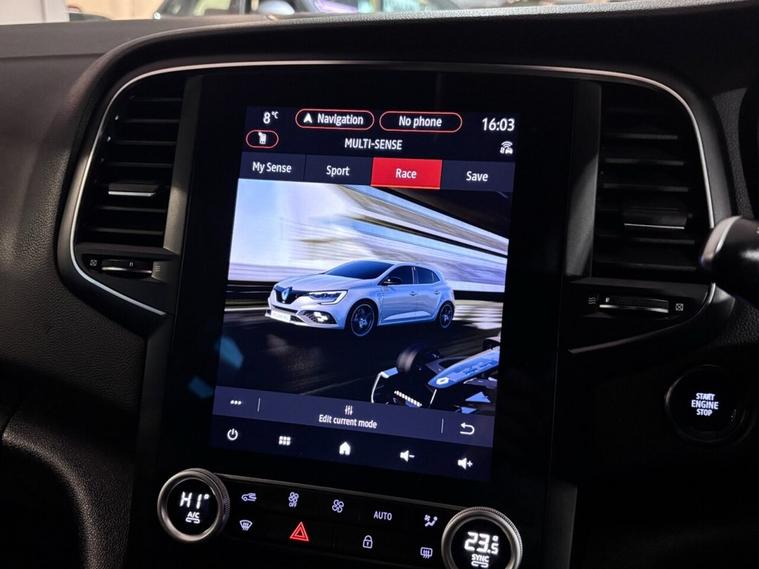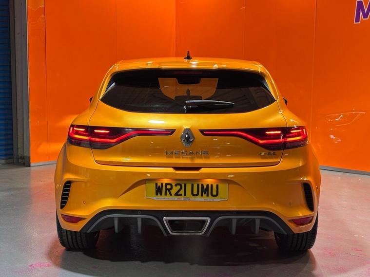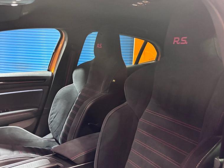 This 2021 Renault Megane T R.S.300 is a performance focused hatchback. It features a potent 1.8L petrol engine, meeting Euro 6 emission standards. Inside, youll find stylish Alcantara upholstery in black with contrasting red stitching, complemented by 19 inch Interlagos Black Diamond Cut alloy wheels. For comfort, it includes heated seats and practical rain and light sensors that automatically activate the headlights. Experience exhilarating performance with a rapid 0-60mph acceleration time of just 5.7 seconds, demonstrating its superior capability compared to other vehicles in its class. The advanced Easy Link navigation system, displayed on a 9.3 inch touchscreen, integrates seamlessly with Android Auto and Apple CarPlay. Enjoy your favourite music through the premium Bose 9 speaker audio system, offering a truly immersive sound experience.