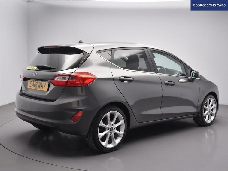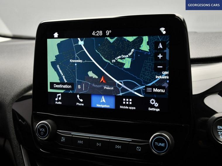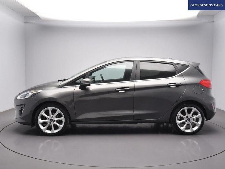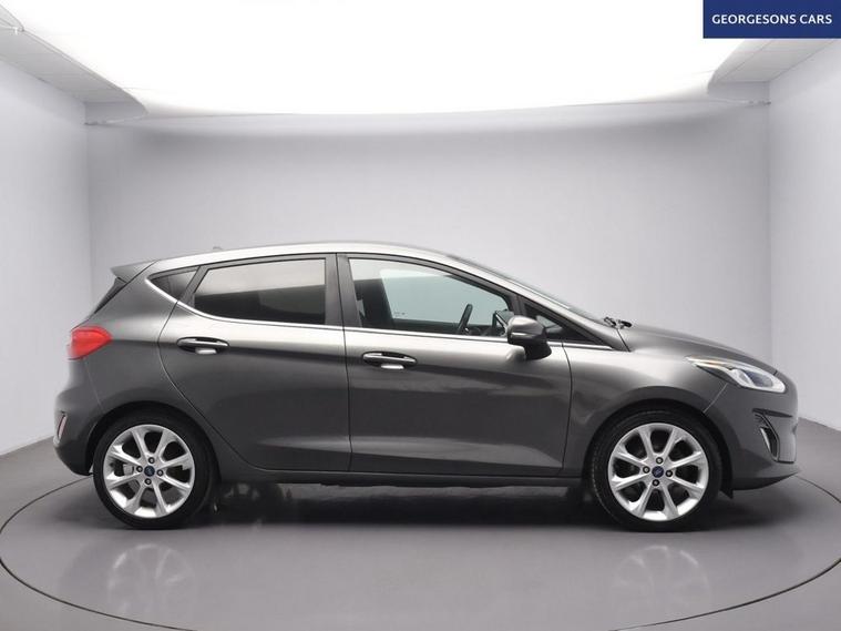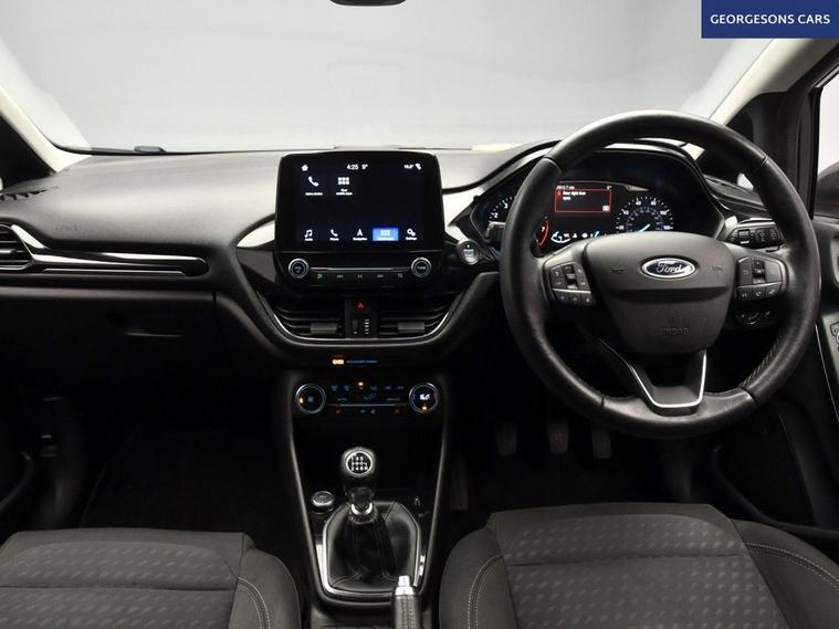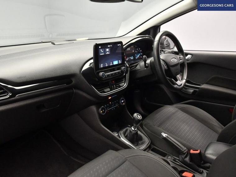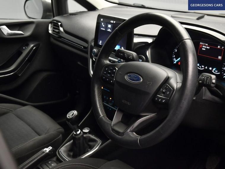 The Ford Fiesta 1.0T EcoBoost Titanium combines a punchy 1.0-litre turbo petrol engine with 125hp, delivering 0-62mph in 9.9 seconds and up to 56.5mpg in this front-wheel-drive setup with a precise 6-speed manual gearbox. The top-spec Titanium trim brings premium touches with 16-inch alloys and a high-grade interior. Navigate effortlessly with integrated satellite navigation, Apple CarPlay, Bluetooth and DAB radio. Parking is a breeze thanks to the reverse camera and parking sensors. Stay comfortable with heated seats, heated windscreen and heated steering wheel. Adaptive cruise control with speed limiter makes longer journeys effortless. The spacious five-door hatchback includes a 292-litre boot for practicality.