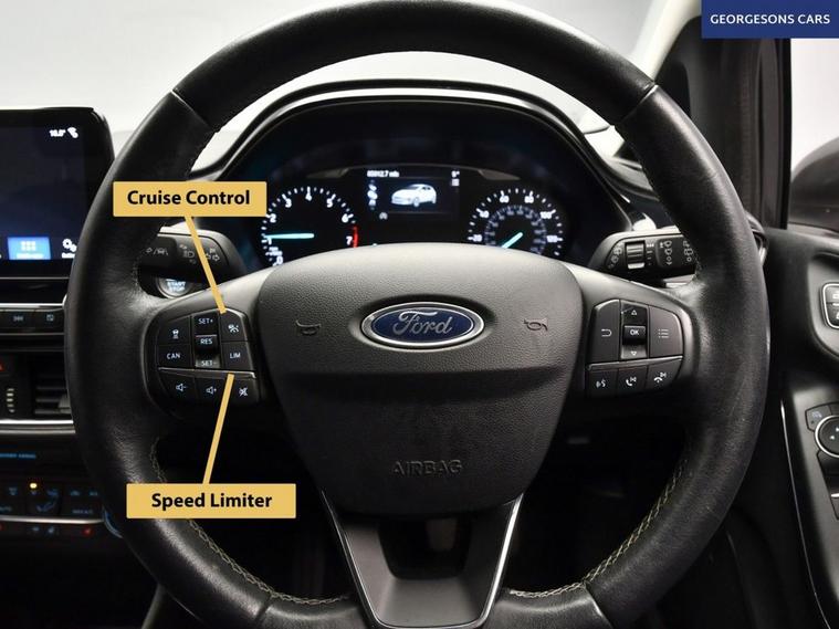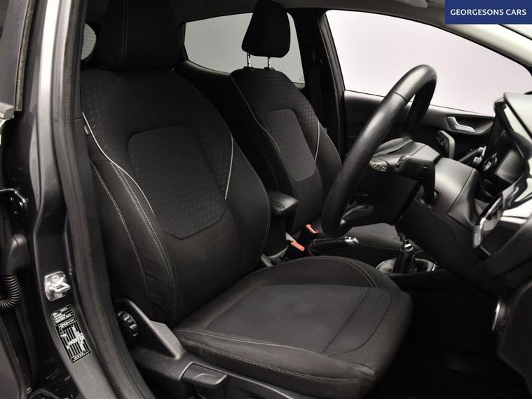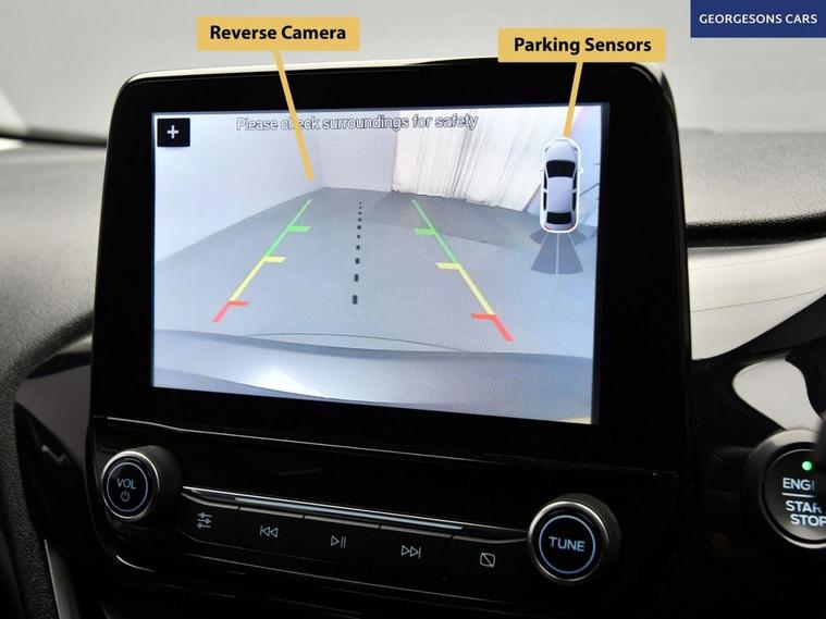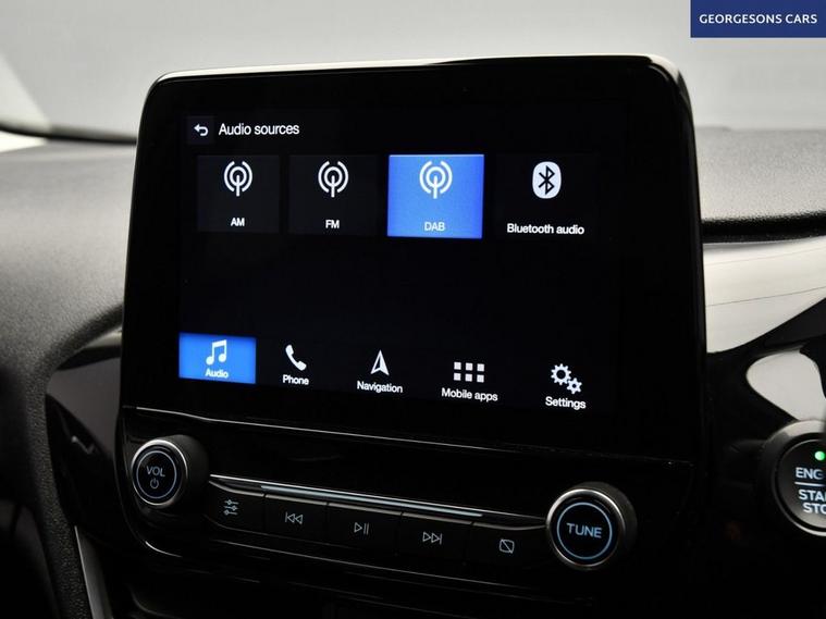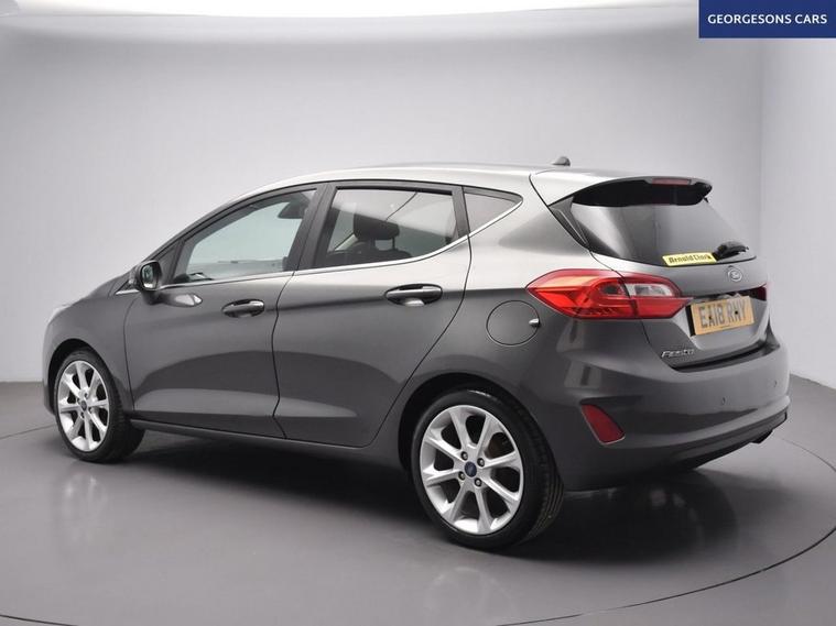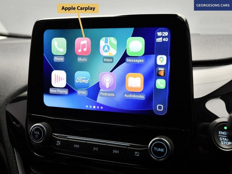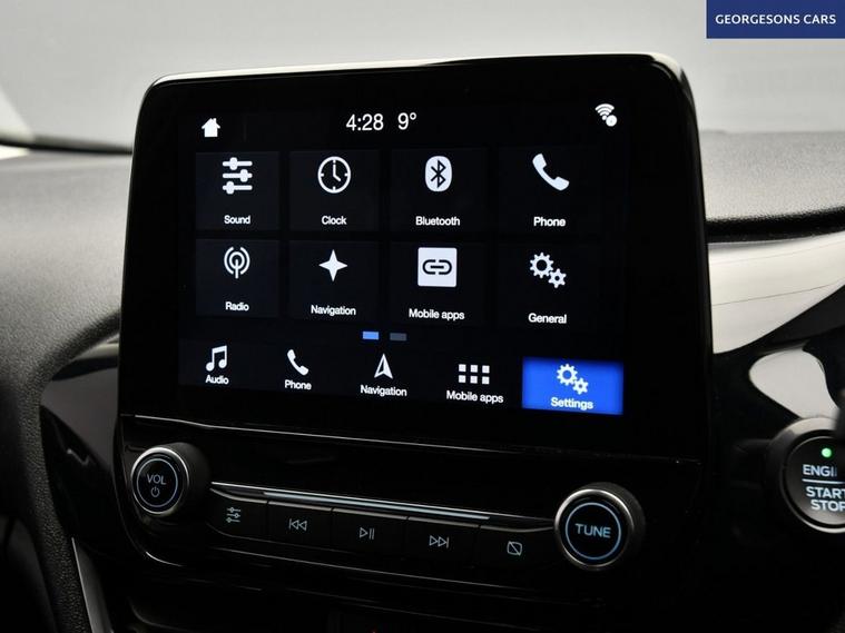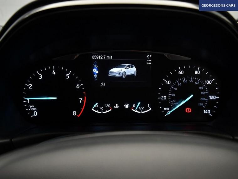The Ford Fiesta 1.0T EcoBoost Titanium combines a punchy 1.0-litre turbo petrol engine with 125hp, delivering 0-62mph in 9.9 seconds and up to 56.5mpg in this front-wheel-drive setup with a precise 6-speed manual gearbox. The top-spec Titanium trim brings premium touches with 16-inch alloys and a high-grade interior. Navigate effortlessly with integrated satellite navigation, Apple CarPlay, Bluetooth and DAB radio. Parking is a breeze thanks to the reverse camera and parking sensors. Stay comfortable with heated seats, heated windscreen and heated steering wheel. Adaptive cruise control with speed limiter makes longer journeys effortless. The spacious five-door hatchback includes a 292-litre boot for practicality.