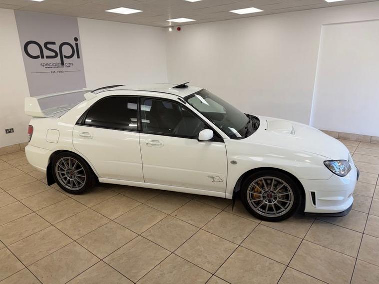 Aspi Specialist Cars are delighted to offer this exceptional throughout; 1 of 300 ever built 2005 Subara Impreza WRX STI Spec C TYPE RA. A track-focused, lightweight, limited-production JDM variant of the GD-chassis WRX STI, built primarily for rally homologation in Japan. It sits above the standard STI and even the Spec C in terms of motorsport intent. The RA Record Attempt name comes from a Nrburgring lap: a prototype reportedly did 7:59.41, breaking into sub-8 minute territory for a production-derived car. In the 2005 Nrburgring 24-hour race, a nearly production Spec-C Type RA finished 2nd in class, showing its capability. This fine example was Imported from Yokohama, Japan by Hurst Cars in 2019 - All correct documentation, and JEVIC mileage verification are present, along with Full Japanese Service History prior to import. Since the cars arrival in the U.K in February 2019 it has covered around 10, 000 miles, and has been cherished throughout. Underside images within the advert, with the trays removed showcase the cars fantastic condition, along with a history file with ample records and receipts of regular engine, differential, gearbox oil changes along with fluids, filters, timing belt, pulleys and more; all complete the file. Over the past 6 years this special car has further undergone tasteful, and extremely high quality upgrades and works carried out with both Genuine Parts, and notably from Roger Clark Motorsport - Further details can be provided upon enquiry, all combined, make for one of the very best examples currently available on the market today. A locally sourced example, directly from a serial enthusiast and avid collector of JDM cars, this is an unmissable opportunity to acquire a solid piece of motorsport history, and a surefooted investment proposition; The combination of limited production, JDM-legend status, and STI motorsport lineage makes it highly collectible. Weather you are looking to unearth your inner Colin McCrae or simply to enjoy this wonderful vehicle, we welcome appointments to view and inspect this irreplaceable Spec C Type RA.