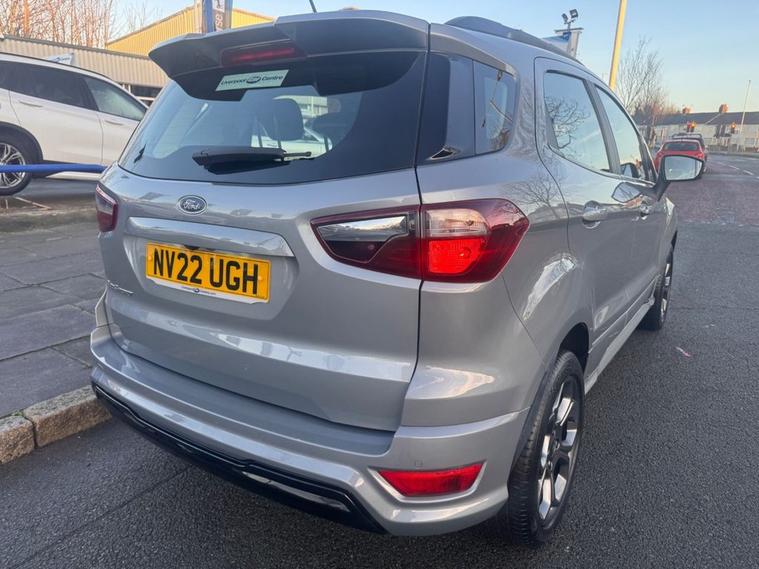 ???? Ready for Adventure: 2022 Ford EcoSport 1.0T EcoBoost ST-Line SUV! Exceptional Value | One Owner | Ex-Motability This stunning 2022 Ford EcoSport ST-Line is now available! Combining sporty ST-Line styling with the practicality of an SUV and the economy of the fantastic 1.0T EcoBoost engine, this is the perfect compact crossover for your next journey. Peace of Mind Included: FRESH 12 MONTH MOT SERVICE upon sale 6 MONTHS COMPREHENSIVE PARTS & LABOUR WARRANTY BREAKDOWN COVER for complete peace of mind ? Unrivalled Pedigree & Service History ONE CAREFUL OWNER from new (Ex-Motability) Documented service history at: 18, 200 miles and 33, 222 miles ???? Key Features & Specification (ST-Line Model) SPORTY STYLING & EXTERIOR: 17 5-Spoke Dark Tarnish Alloy Wheels ST-Line Bodystyling Kit (Sport Bumpers, Side Skirts, Large Rear Spoiler) Black Roof Rails Quickclear Heated Front Windscreen Automatic Headlights & Rain-Sensing Wipers LED Daytime Running Lights (DRL) Sports Suspension TECHNOLOGY & COMFORT: Ford SYNC 3 Navigation with 8-inch Touchscreen DAB Radio, Apple CarPlay & Android Auto Rear View Camera Rear Parking Sensors Electronic Automatic Temperature Control (EATC) Cruise Control with Adjustable Speed Limiter Sensico-Trimmed Sports Steering Wheel with Red Stitching Sports Pedals with Stainless Steel Inserts Ambient Interior Lighting SAFETY & PERFORMANCE: Pre-Collision Assist with Autonomous Emergency Braking (AEB) Traffic Sign Recognition (TSR) Electronic Stability Programme (ESP) with Hill Launch Assist Efficient 1.0T EcoBoost Petrol Engine (125 BHP) 6-Speed Manual Transmission ULEZ Compliant ???? Contact Us Today! Ready to get behind the wheel of this stylish and capable SUV? To REQUEST A TEST DRIVE or for a PERSONALISED VIDEO of the vehicle, contact us now: CALL: 01512972917 Dont miss out on this fantastic opportunity!