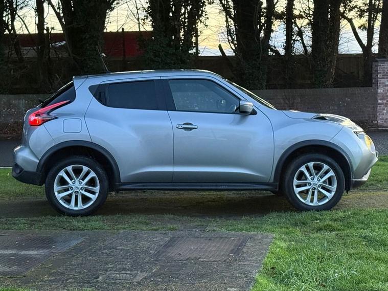 We are pleased to offer for sale this NISSAN JUKE 1.2 N-CONNECTA DIG-T 5D Hatchback finished in metallic silver, petrol (manual), with 72, 182 warranted miles with black cloth interior, the car will come with a NEW 12 month MOT. this car has a good service history with 6 recorded Services in the book, features include: central locking with 2 keys, front/rear fog lights, 17 inch alloy wheels, electric windows X4, steering wheel controls, bluetooth, cruise control, auto lights, auto wipers, keyless start, trip computer, sat nav, rake/reach steering, air conditioning with climate control, radio, cd player, AUX, USB, isofix, drivers height adjustable seat, drivers-passengers air bags, rear heated screen, leather arm rest, inflation kit, reversing camera, electric folding mirrors, tinted rear windows, D-Mode With Sport, Normal, Eco Modes, Start/Stop,