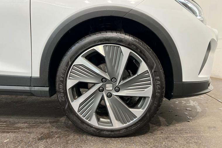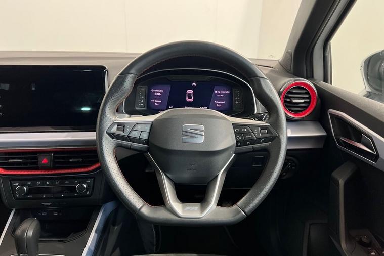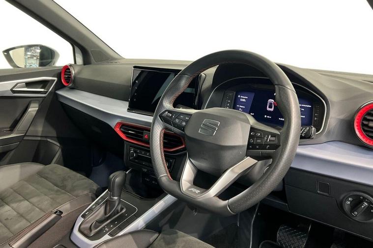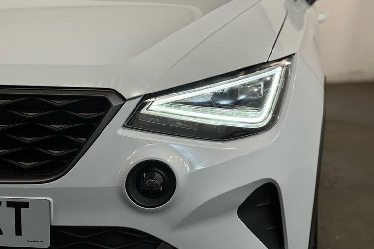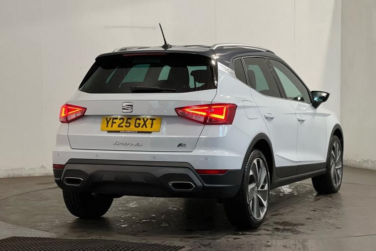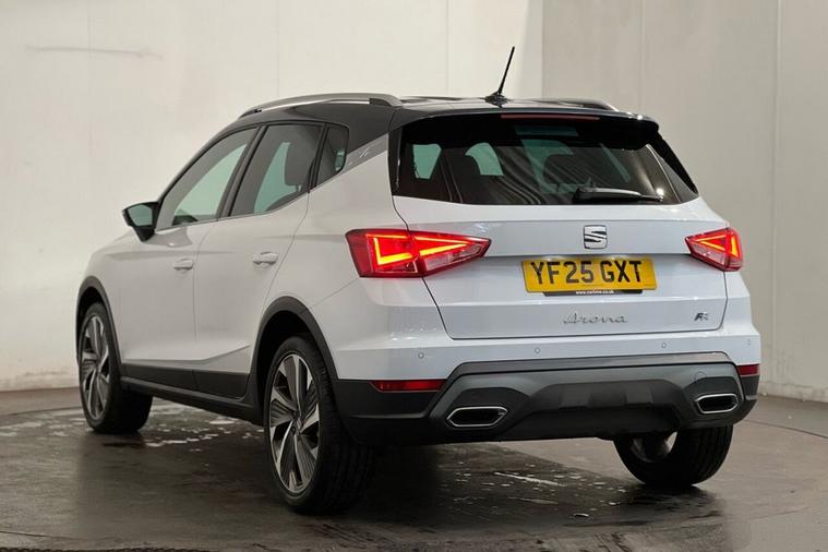 Enjoy peace of mind with this SEAT Arona TSI FR Sport, boasting an MOT valid until May 2028 and a clear vehicle history check. This 2025 registered model features a 1.0 litre Euro 6 petrol engine and comes in the sporty FR Sport trim. Inside, youll find the convenience of Full Link Smartphone Integration, allowing seamless use of Android Auto and Apple CarPlay, alongside a Wireless Phone Charger and Bluetooth Audio Streaming with Handsfree System. For your comfort, Dual Zone Climate Control ensures everyone enjoys the perfect temperature, while the Safety and Driving Pack, including rear parking sensors, adds an extra layer of security. This SEAT Arona stands out with its impressive fuel economy, achieving a highlight of 50 mpg, which indicates it is more economical than many similar vehicles. Furthermore, its low CO2 emissions also position it favourably against other cars in its class. This combination of efficiency and advanced features makes the Arona TSI FR Sport a compelling choice for those seeking a stylish and practical vehicle.
