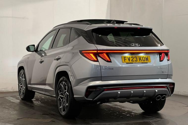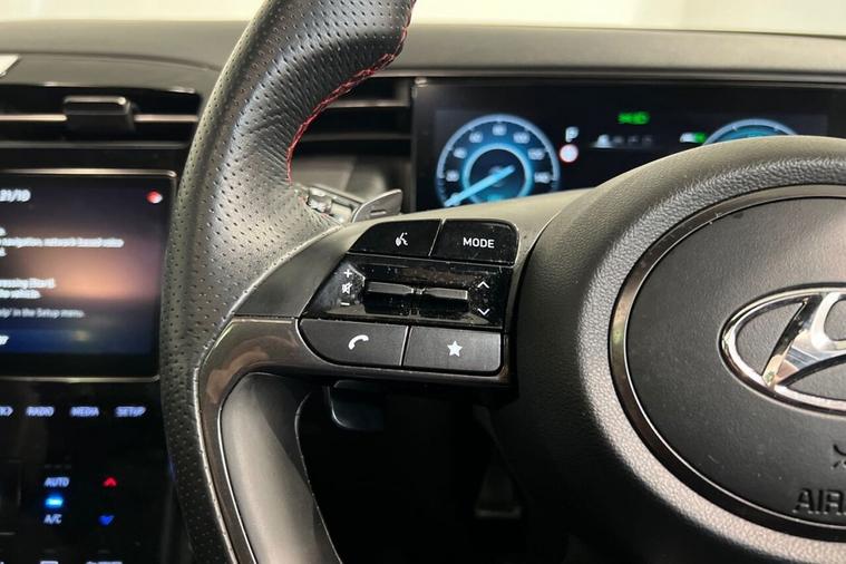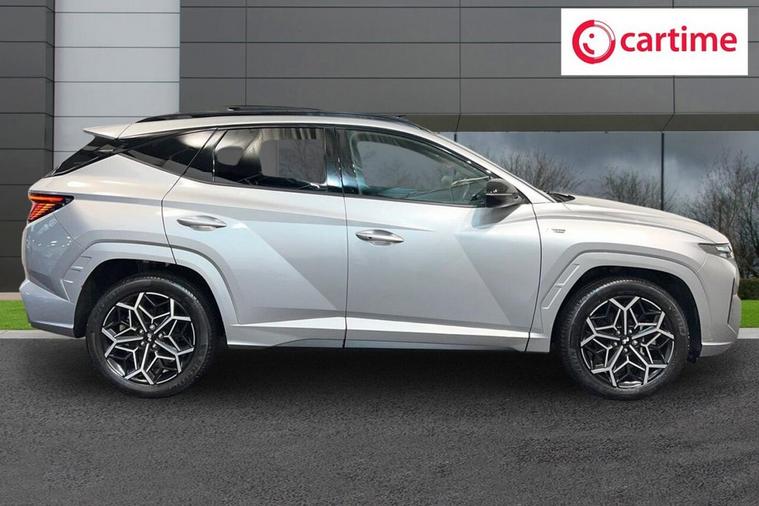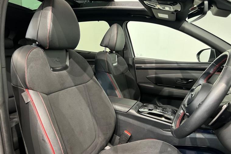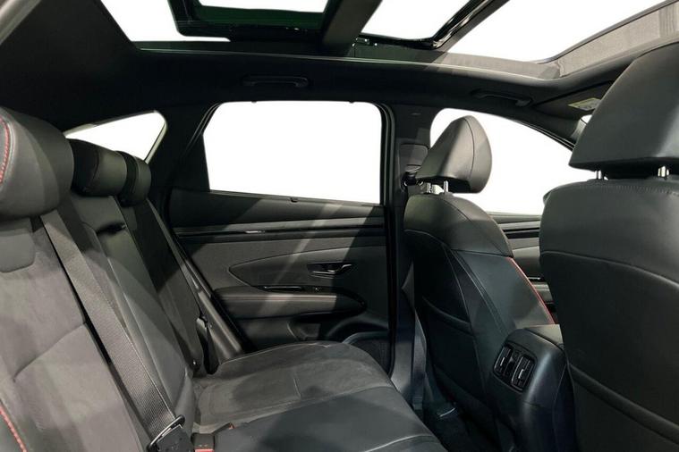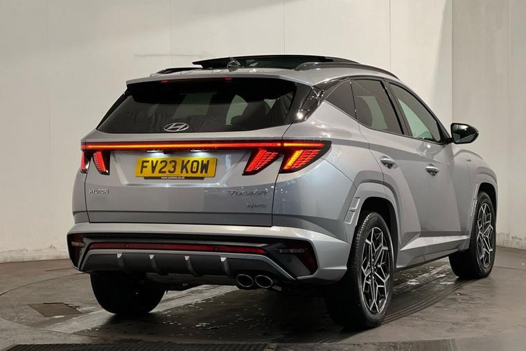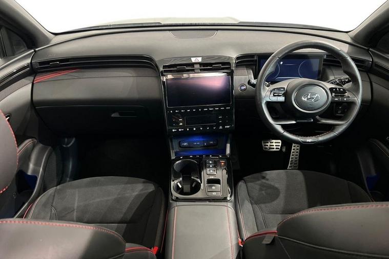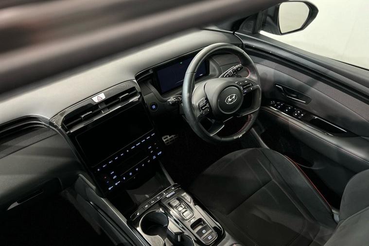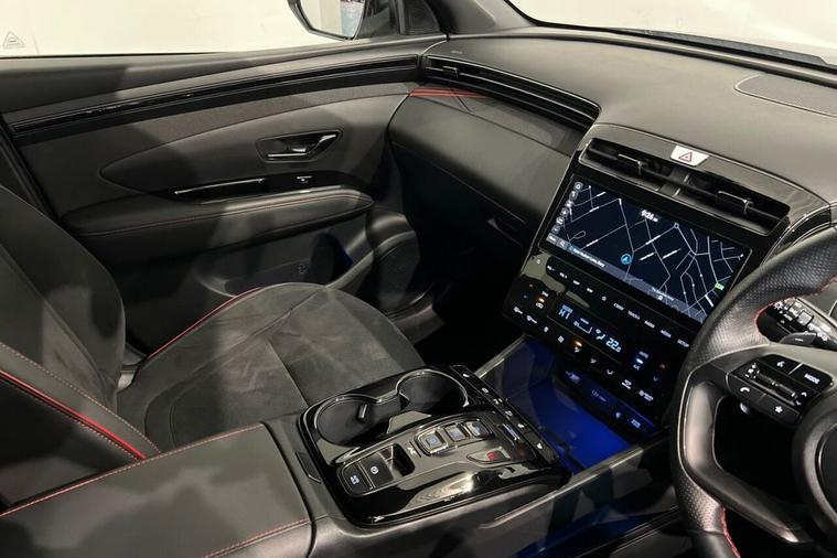 This 2023 Hyundai TUCSON h T-GDi N Line S presents an exceptional ownership proposition with its remarkably low mileage of just 10999 miles, a clear vehicle history check, and a single owner from new. This Euro 6 compliant 1.6 litre petrol hybrid is presented in the desirable N Line S trim, offering a blend of sporty styling and efficient performance. The TUCSON N Line S boasts impressive acceleration, reaching 0-60mph in a swift 8.0 seconds, a figure that highlights its dynamic capability compared to many similar vehicles. Furthermore, its low insurance group rating indicates that running costs are kept to a minimum, making it an economical choice. Practicality is also a key strength, with generous boot space designed to accommodate your luggage and shopping needs with ease.