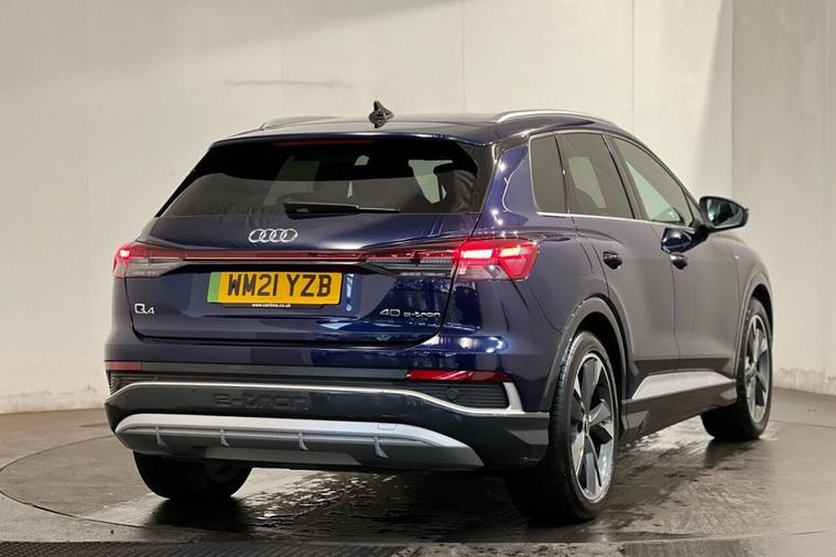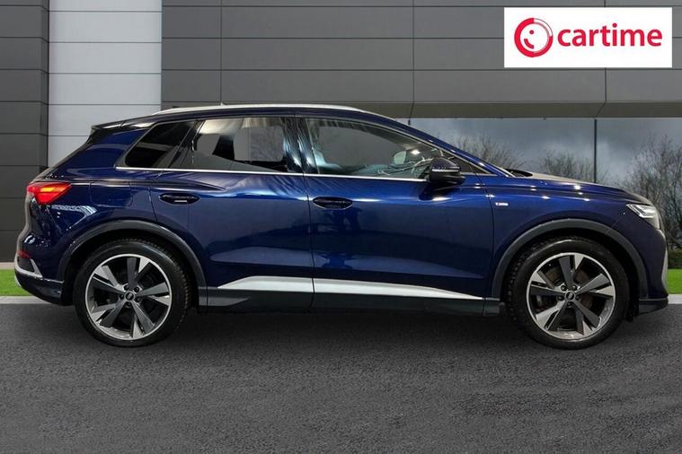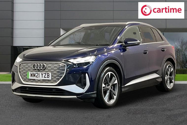 This 2021 Audi Q4 e-tron Launch Edition boasts a clear vehicle history and has had only one owner from new. As an electric vehicle, it offers a substantial battery total capacity of 82 kWh, providing a maximum range of 305 miles when new. This model comes equipped with desirable features such as heated front seats for added comfort, a SONOS Premium Sound System for an enhanced audio experience, and the Audi Smartphone Interface which seamlessly integrates Android Auto and Apple CarPlay. The advanced Matrix LED Headlights with dynamic light sequencing and indicators ensure excellent visibility and a distinctive presence. The Q4 e-tron Launch Edition is designed for convenience and practicality. Its large boot space offers ample room for luggage or shopping. For home charging, a full charge from empty using a 7kW charger takes approximately 11 hours and 30 minutes, while rapid public charging can replenish the battery from empty to 80% in as little as 40 minutes. This impressive charging capability, combined with its generous 305 mile range, positions this Audi Q4 e-tron as a compelling choice for those seeking an efficient and well equipped electric SUV. The MOT is valid until July 2026, providing further peace of mind.