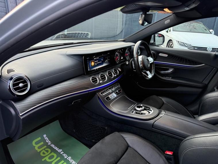 This 2018 Mercedes Benz E Class E220d AMG Line offers a blend of luxury and performance, benefiting from a 3 month warranty for your peace of mind. As a Euro 6 compliant vehicle, it features a 2.0L diesel engine, ensuring efficient driving. The AMG Line trim enhances its sporty appeal, while notable features include a striking 12.3 inch widescreen cockpit display, a comprehensive parking package with front and rear sensors, and automatic headlights for convenience. Inside, youll find heated front seats for added comfort and the Audio 20 USB system with Bluetooth connectivity. Experience the dynamic capabilities of this E Class, which accelerates from 0 to 60mph in a swift 7.3 seconds. This impressive acceleration demonstrates how this particular model offers a more engaging driving experience compared to other vehicles in its class. The combination of its powerful yet economical diesel engine, advanced technology, and the refined Mercedes Benz driving experience makes this E220d AMG Line a compelling choice.