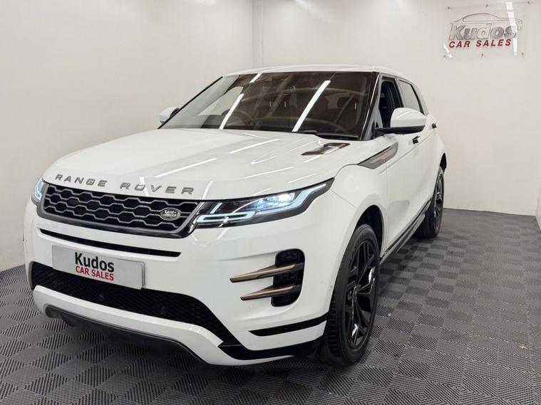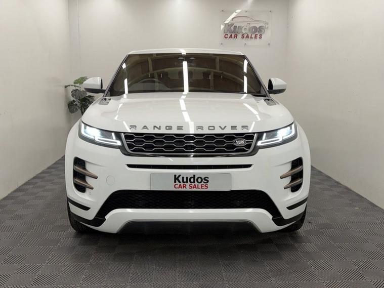 2020 LAND ROVER RANGE ROVER EVOQUE 2.0 D180 R-Dynamic SE 5dr Automatic - A REAL HEAD TURNING CAR, FINISHED IN STUNNING FUJI WHITE WITH ROSE GOLD DETAIL. NO DEPOSIT FINANCE AVAILABLE FROM £460 per mth. 6 MONTH WARRANTY INCLUDED. EACH VEHICLE COMES WITH A FREE HPI CLEAR REPORT AND AA BREAKDOWN COVER. ONLY 50000 MILES. FULL SERVICE HISTORY AND JUST HAD A SERVICE. MOT UNTIL 20/11/2026. SUCH A STUNNING CAR AND REALLY LOVELY TO DRIVE. **LUXURY SPEC** FULL BLACK LEATHER INTERIOR, MEMORY ELECTRIC FRONT SEATS, HEATED FRONT SEATS, TOUCH DIGITAL DASHBOARD TOUCH SCREEN SAT NAV, REAR PARKING CAMERA, FRONT AND REAR PARKING SENSORS, CRUISE CONTROL, KEYLESS PUSH BUTTON START, ADJUSTABLE DRIVING MODES, MERIDIAN SOUND SYSTEM, INDIVIDUAL CLIMATE CONTROL, LED LIGHTS, BLIND SPOT ALERT, AIRCON, BLUETOOTH, DAB RADIO, POWER OPEN BOOT, POWER FOLDING MIRRORS, ELEC WINDOWS AND MIRRORS. UNMARKED 20 ALLOY WHEELS. FINANCE PACKAGES - With a number of lenders on board i am able to offer Finance to suit individual circumstances, including Sub Prime. All CARS ARE HPI CHECKED AND CLEAR. WARRANTY - At KUDOS CAR SALES every vehicle comes with a FREE 6 MONTH Warranty. Any repairs under warranty can be carried out at your local garage -Extended warranty available on request at extra cost. PREVIOUS NON SMOKER. 2 KEYS. ***ALL PART EXCHANGES CONSIDERED***