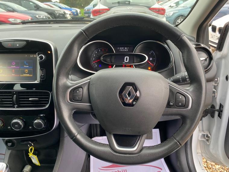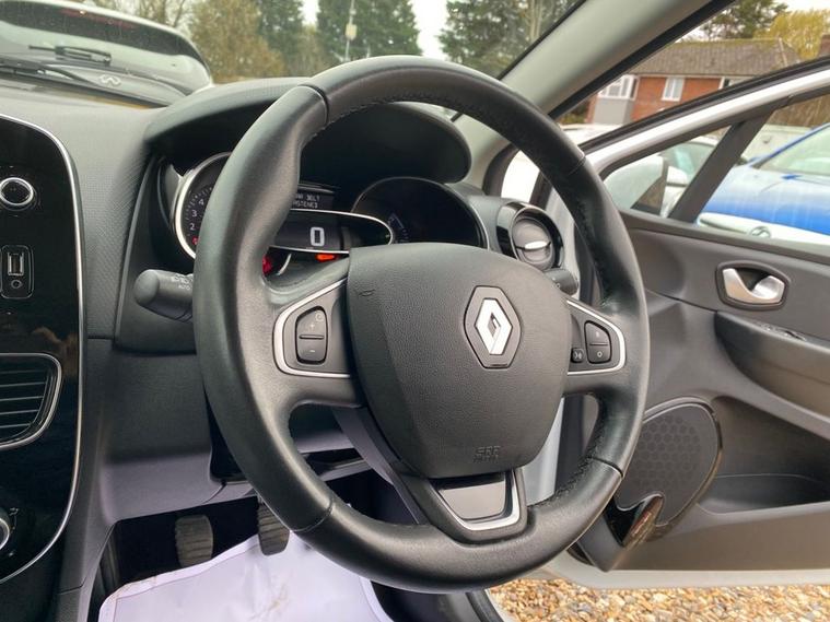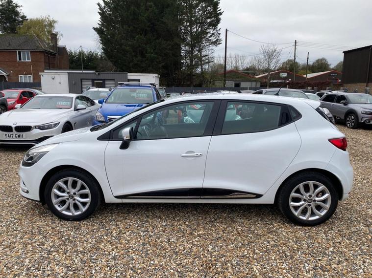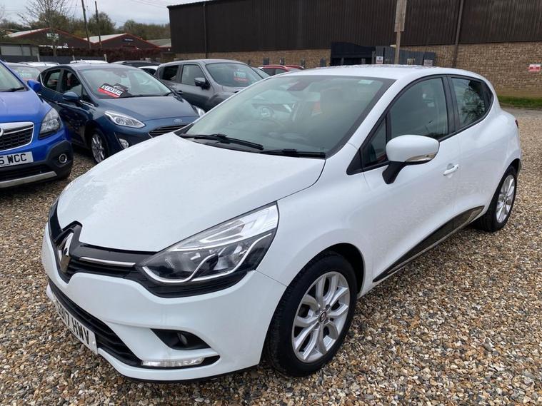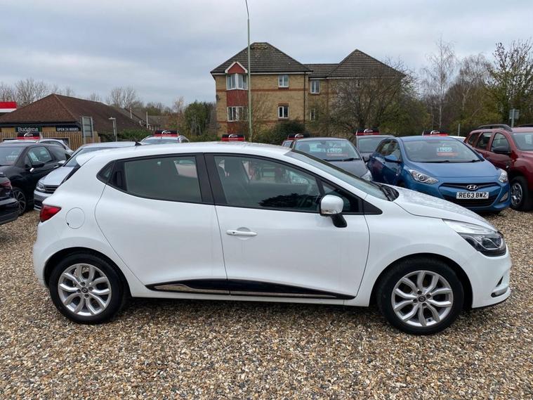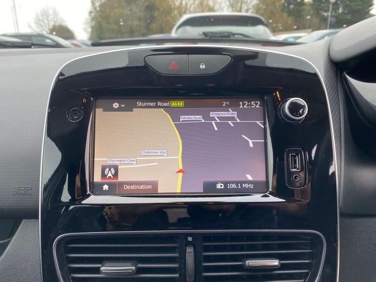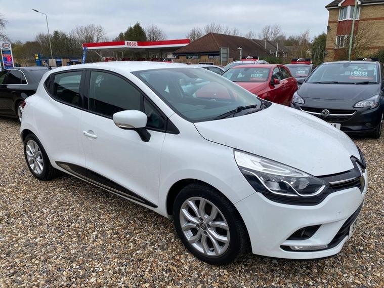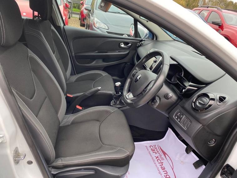 ONLY 25, 593 MILES+EXCELLENT SERVICE HISTORY+12 MONTHS MOT+RENAULT MEDIA NAV+AIR-CONDITIONING+AUTOMATIC HEADLIGHT ACTIVATION+RAIN-SENSING WINDSCREEN WIPERS+GLACIER WHITE PAINT+16 INCH ALLOY WHEELS. At Haverhill Car Xchange we would like to offer you our EXTREMELY LOW MILEAGE Renault Clio Dynamique Nav Hatchback which has been finished in a Glacier White paint, Dark Carbon with Mesh Inserts and Grey Piping. Specification Includes a Renault MediaNav System, USB Socket, Jack, 12 Volt Power Socket, Air-Conditioning, Gear Change Indicator, Cruise Control with Speed Limiter, Front Electric Windows, Body Coloured Bumpers/Door Handles, Rear Roof Spoiler and Door Mirrors with Integrated Side Indicators, Automatic Headlight Activation, LED Daytime Running Lights, Double Optic Halogen Headlights, Front Fog Lights, Rain-Sensing Windscreen Wipers, Steering WSheel, Handsfree Keycard with Push Button Start-Stop Function, 16 Inch Alloy Wheels, Power Assisted Steering, Hill Start Assist, ABS Breaking System, Alarm, Immobiliser, Remote Central Locking and ISOFIX Anchorage Points for Child Seats.