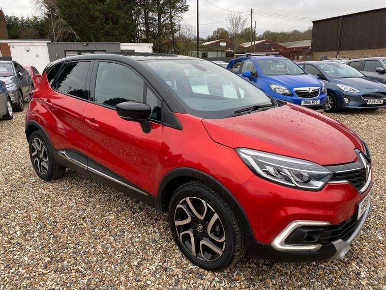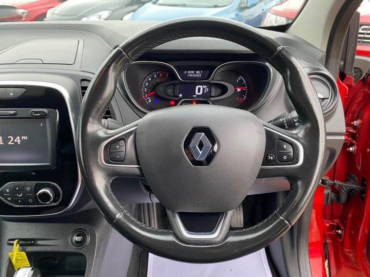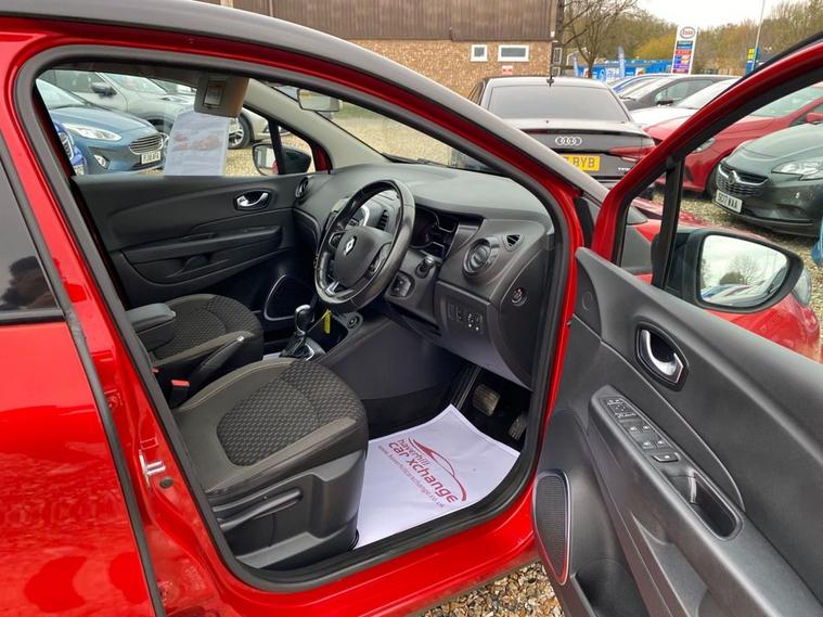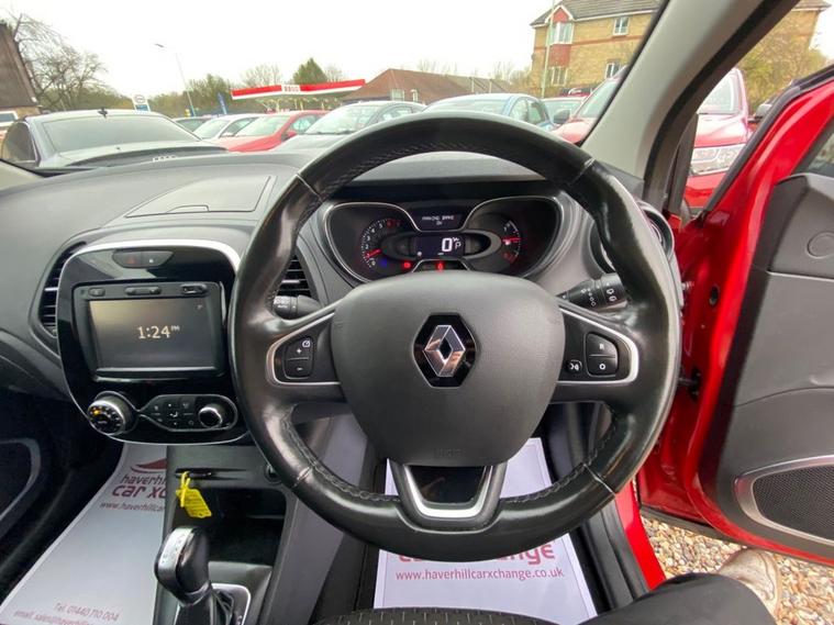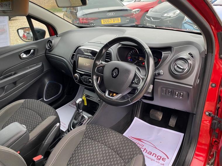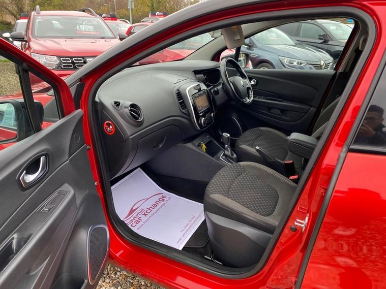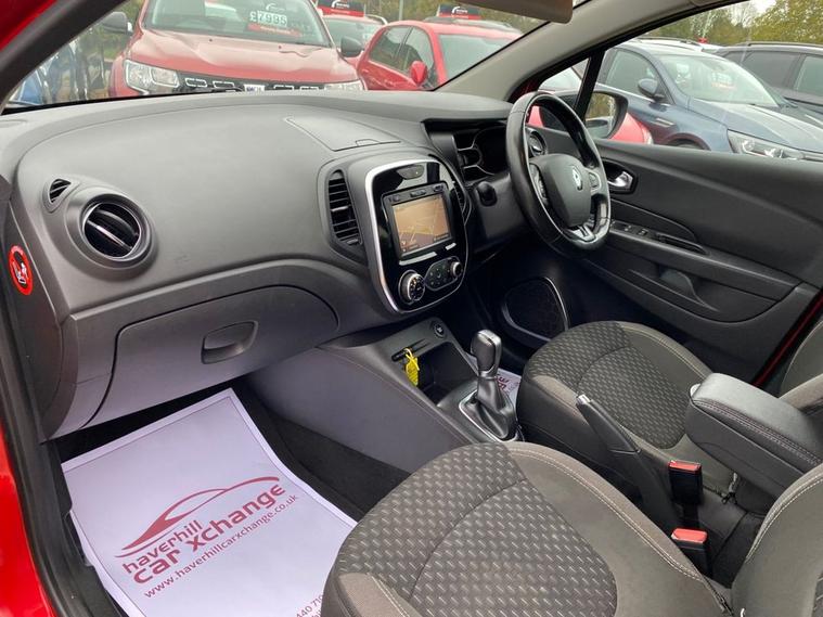 AUTOMATIC+ONLY 36, 041 MILES+EXCELLENT SERVICE HISTORY CONSISTS OF X7 SERVICES+SATELLITE NAVIGATION SYSTEM+AUTOMATIC CLIMATE CONTROL AIR-CONDITIONING+AUTOMATIC HEADLIGHT ACTIVATION+RAIN-SENSING WINDSCREEN WIPERS+PARKING ASSISTANCE WITH PARKING CAMERA+METALLIC FLAME RED PAINT+17 INCH ALLOY WHEELS. At Haverhill Car Xchange we would like to offer you our AUTOMATIC, EXTREMELY LOW MILEAGE, Renault Captur which has been finished in a metallic Flame Red paint with Charcoal Grey Cloth upholstery. Excellent Specification Includes MediaNav, USB Socket, Jack, 12 Volt Power Socket, Automatic Climate Control Air-Conditioning, Cruise Control with Speed Limiter, ECO Function Mode, Front and Rear Electric Windows, Body Coloured Bumpers/Door Handles, Black Roof/Rear Spoiler and Door Mirrors with Integrated Side Indicators, Automatic Headlight Activation, Full LED Headlights, Front and Rear LED Daytime Running Lights, LED Front Fog Lights with Cornering Function, LED Tail Lights 3D Effect, Rain-Sensing Windscreen Wipers, Parking Assistance with Parking Camera, Multifunction Leather Steering Wheel, Extra Tinted Window on Rear and Tailgate, 17 Inch Alloy Wheels with Black Inserts, Handsfree Keycard with Push Button Start-Stop Function, Power Assisted Steering, Hill Start Assist, Safety Rear Door Locks, ABS Breaking System, Airbags, Alarm, Immobiliser and Remote Central Locking.