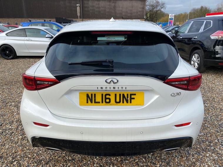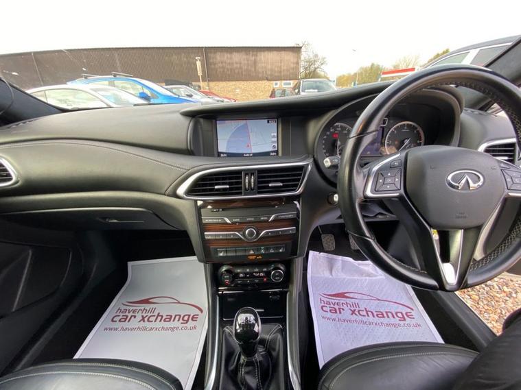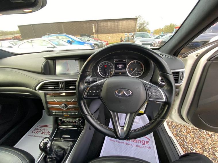 ONLY £35 A YEAR ROAD TAX+LONG MOT UNTIL 26.09.2026+TOUCH SCREEN SATELLITE NAVIGATION SYSTEM+BLUETOOTH+LANE DEPARTURE WARNING+DUAL ZONE AUTOMATIC CLIMATE CONTROL AIR-CONDITIONING+LUXURIOUS HEATED LEATHER UPHOLSTERY+AUTOMATIC HEADLIGHT ACTIVATION+RAIN-SENSING WINSCREEN WIPERS+FRONT & REAR PARKING ASSISTANCE WITH PATRKING CAMERA+PEARLESCENT MOONLIGHT WHITE PAINT+18 INCH ALLOY WHEELS. At Haverhill Car Xchange we would like to offer you our Infiniti Q30 Premium Tech Hatchback which has been finished in a pearlescent Moonlight White paint with luxurious Graphite HEATED leather upholstery. Excellent Specification Includes a Touchscreen Satellite Navigation System, Radio-CD-MP3 Player, Bluetooth Audio Streaming with Phone Book Functionality, x2 USB Ports with Smart Phone and IPod Connectivity, Lane Departure Warning, Infiniti Drive Mode Selector, Automatic Dual Zone Climate Control Air-Conditioning, Cruise Control, Front and Rear Electric Windows with One-Touch Facility, Body Coloured Bumpers/Door Handles/Rear Roof Spoiler and Door Mirrors with Integrated Side Indicators and Puddle Lamps, Automatic Headlight Activation, LED Daytime Running Lights, LED Front Fog Lights, LED Rear Combination Lights, Rain-Sensing Windscreen Wipers, Heated Upholstery, Front and Rear Parking Assistance with Parking Camera, Leather Multifunction Steering Wheel, Heated Windscreen, Electronic Parking Break, 18 Inch Alloy Wheels, Speed Sensitive Power Steering, Hill Start Assist, ABS Breaking System, Alarm, Immobiliser, Remote Central Locking and ISOFIX Anchorage Points for Child Seats.