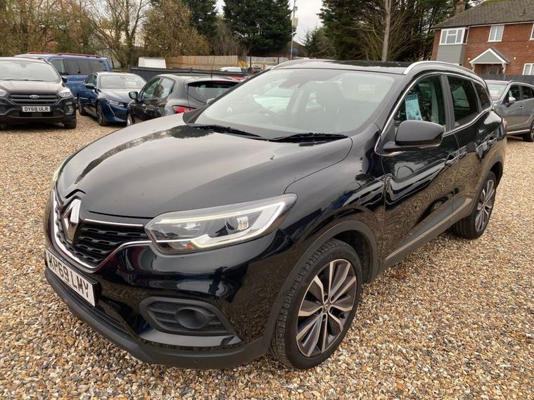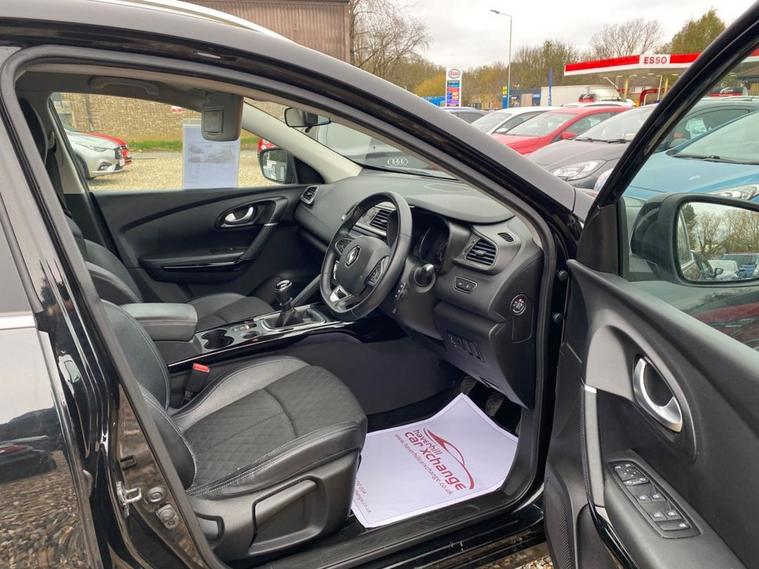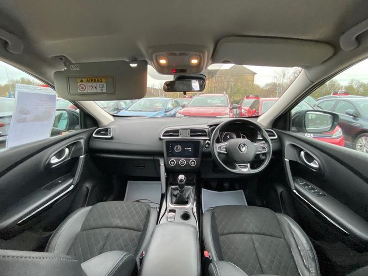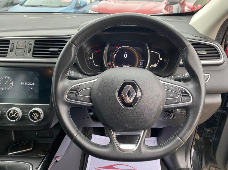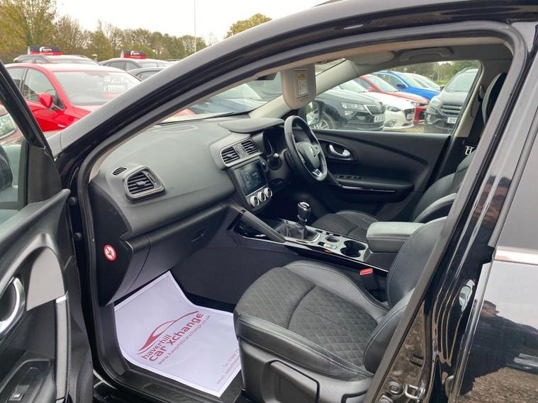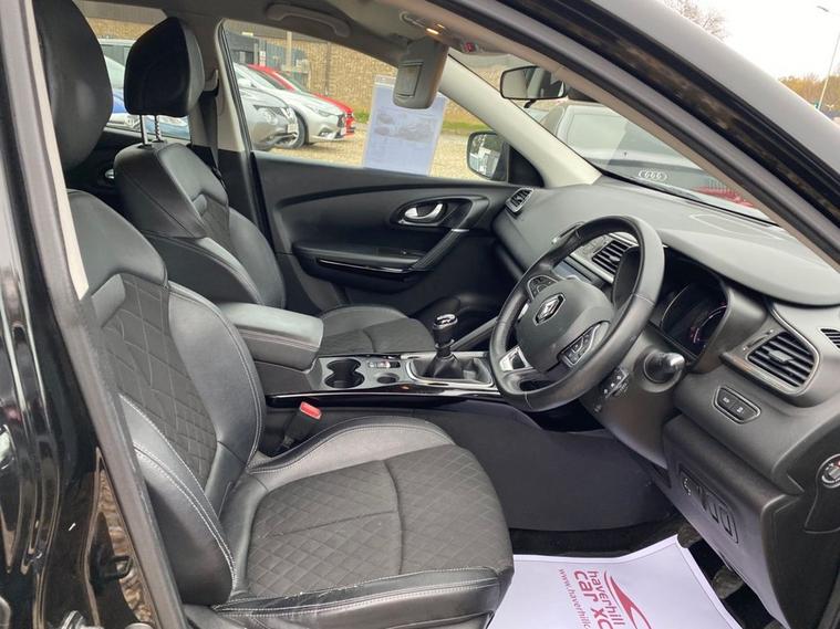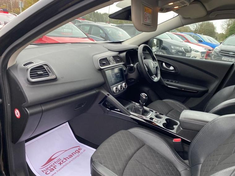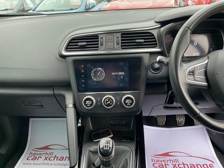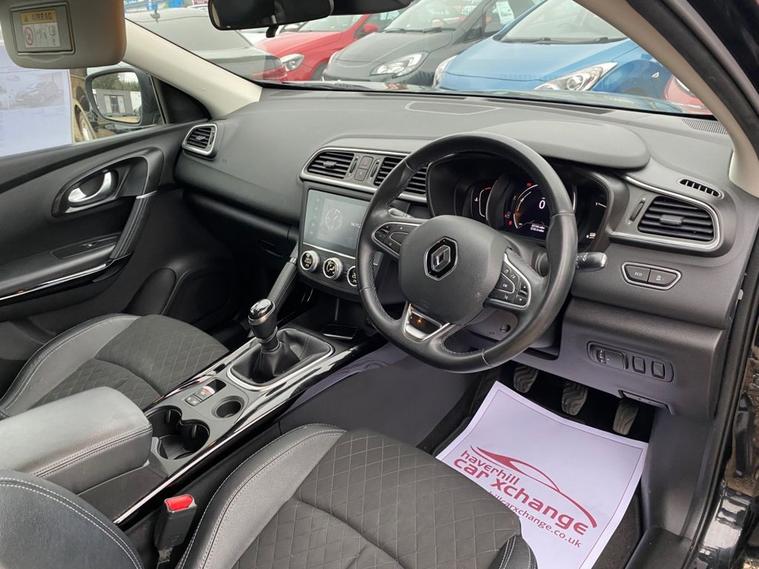 ONLY 67, 737 MILES+LONG MOT UNTIL 26.09.2026+7 INCH TOUCHSCREEN WHICH FEATURES AN R-LINK 2 MULTIMEDIA SYSTEM-SATELLITE NAVIGATION SYSTEM+APPLE CARPLAY/ANDROID AUTO+LANE DEPARTURE WARNING+DUAL ZONE CLIMATE CONTROL AIR-CONDITIONING+AUTOMATIC HEADLIGHT FUNCTION+RAIN-SENSING WINDSCREEN WIPERS+FRONT & REAR PARKING ASSISTANCE WITH PARKING CAMERA+HALF LEATHER UPHOLSTERY+DIAMOND BLACK PAINT+19 INCH ALLOY WHEELS. At Haverhill Car Xchange we would like to offer you our Renault Kadjar Iconic SUV which has been finished in a Diamond Black paint with luxurious Black half leather and cloth upholstery. Excellent Specification Includes a 7 Inch Touchscreen R-Link Multimedia System which features Satellite Navigation, Apple CarPlay/Android Auto, Rear USB Plugs, Accessory Power Point, Lane Departure Warning, Automatic Dual Zone Climate Control Air-Conditioning, ECO Mode, Gear Change Indicator, Cruise Control with Speed Limiter, Front and Rear Electric Windows, Body Coloured Bumpers/Door Handles/Rear Roof Spoiler and Door Mirrors with Integrated Side Indicators, Automatic Headlight Activation, LED Daytime Running Lights, Front Fog Lights with Cornering Function, LED Tail Lights, Daylight-Nightlight Rearview Mirror, Rain-Sensing Windscreen Wipers, Roof Rails, Front and Rear Parking Assistance with Parking Camera, Luxurious Half Leather Upholstery, Multifunction Steering Wheel, Power Steering, Hill Start Assist, ABS Breaking System, Airbags, Alarm, Immobiliser, Remote Central Locking and ISOFIX Anchorage Points for Child Seats.