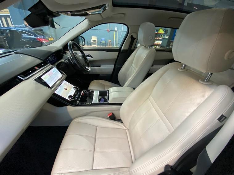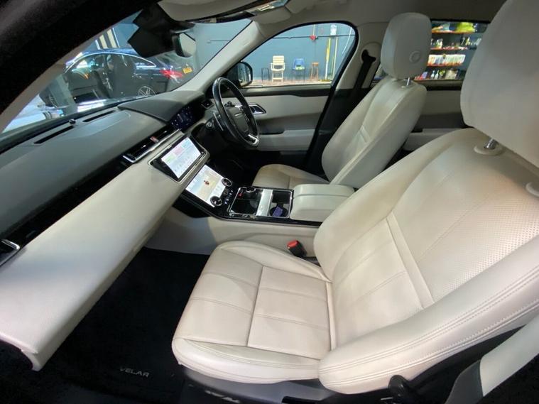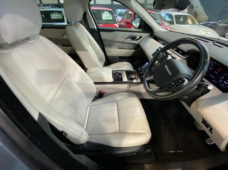 This 2019 Land Rover Range Rover Velar D180 R Dynamic SE boasts a full service history and a clear vehicle history check, offering peace of mind for its next owner. This stylish SUV features a powerful 2.0L diesel engine paired with a Four Wheel Drive system, ensuring capability in various conditions. It meets Euro 6 emission standards and has a towing weight of 2400 kg. Inside, youll find luxurious Perforated Windsor Leather in Light Oyster with Ebony accents, Premium Carpet Mats, and a heated steering wheel for added comfort. The R Dynamic SE trim is further enhanced by striking 21 inch Alloy Wheels with a Satin Dark Grey finish and a Fixed Panoramic Roof, flooding the cabin with natural light. The Range Rover Velar D180 R Dynamic SE offers a compelling blend of performance and refinement. Its acceleration from 0 to 60 mph in just 8.5 seconds demonstrates its responsive nature, setting it apart from many other vehicles in its class. This combination of a robust drivetrain, comprehensive service record, and desirable R Dynamic SE specification, including the premium interior finishes and eye catching alloy wheels, makes this Velar a distinguished choice for those seeking a capable and sophisticated SUV.