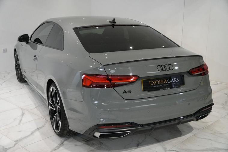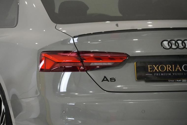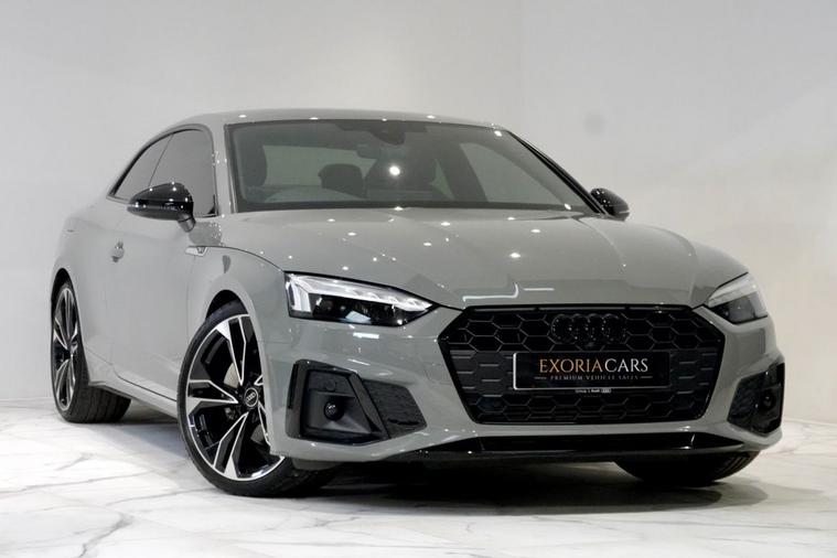 Exoria Cars are pleased to offer this AUDI A5 2.0 TFSI 40 Black Edition Coupe 2dr Petrol S Tronic Euro 6 (s/s) (204 ps) registered on the 08/01/2022. This particular model is presented in Daytona Grey featuring 20in Alloy Wheels - 9J 5-Twin-Spoke, Gloss Anthracite Black. This vehicle has many optional spec extras. These include (but are not limited to) Comfort & Sound Pack, Bang & Olufsen Surround Sound System, Ghost Immobiliser, Audi Matrix LED Headlights, Interior Light Package, Fine Nappa Leather - Sport Seats - S Embossed Logo - Black with Rock Grey Stitching, Electric Folding Mirrors, active safety features and much more. For full details please do enquire via email or phone. This vehicle comes with 2 keys, a full (clear) HPI check and AUDI WARRANTY UNTILL 02/2026. NEXT SERVICE DUE IN 11/2027 (JUST SERVICED WITH AUDI). Full Audi Service History. All 5* reviews on all platforms giving you peace of mind with your new purchase! AA Checks/RAC Checks are welcome! Any used car purchase also qualifies for a free interior and exterior deep clean detail worth £400 with our partnered company DD Detailing who are one of the largest detailing companies in the UK. This vehicle is ready to drive away today! Next MOT due 07/2026. PCP and HP finance available from 9.9% APR (subject to status).