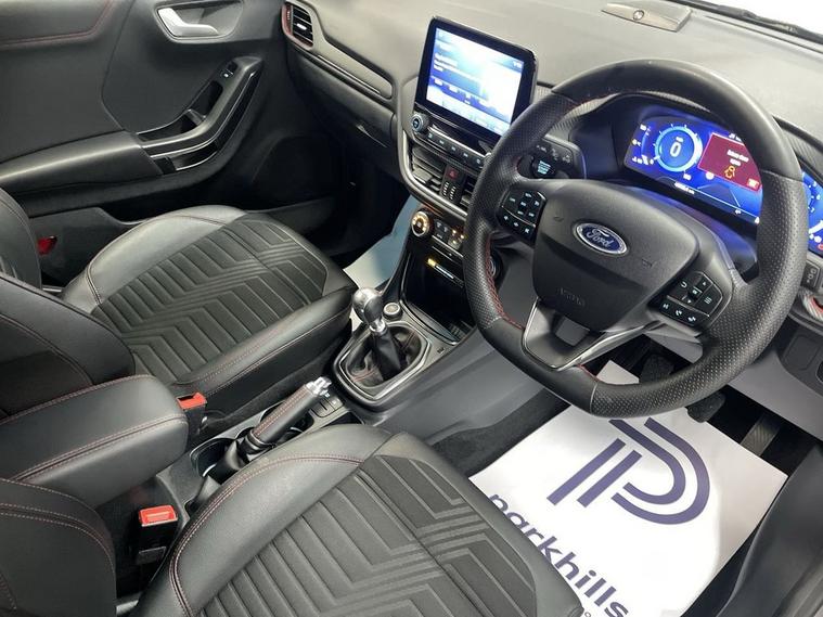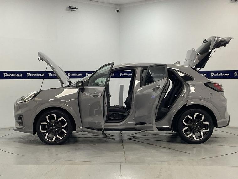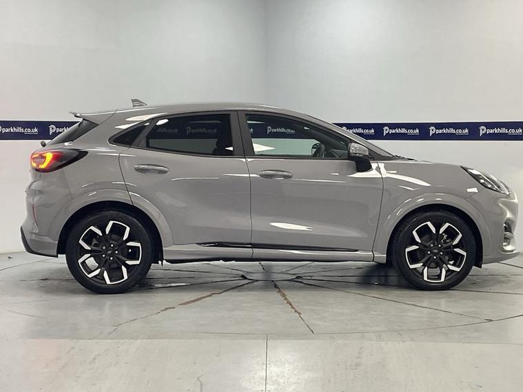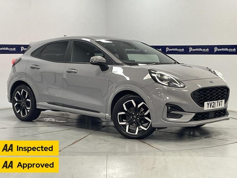 ONE OWNER, EXCLUSIVE PAINTWORK, ST-LINE BODYSTYLING, PRIVACY GLASS, FORD INFOTAINMENT FEATURING DIGITAL COCKPIT, HDD SAT NAV, DAB AND BLUETOOTH PHONE AND MEDIA ENABLING SEAMLESS MUSIC STREAMING, WIRELESS PHONE CHARGING, AIR CON WITH CLIMATE CONTROL, PARKING SENSORS, , 18 ALLOYS, DAYTIME RUNNING LIGHTS, ST-LINE SPORTS HALF LEATHER, CRUISE CONTROL, B&O PREMIUM AUDIO, FLEXIBLE MONTHLY PAYMENTS AVAILABLE ON THIS CAR. This 2021 Ford Puma ST-Line X finished in exclusive grey matter paintwork is a superb example, having been owned by just one careful keeper from new. This stylish compact SUV boasts a responsive 1.0 litre petrol engine, meeting Euro 6 emissions standards. Inside, youll find a premium B&O Sound System integrated with Ford SYNC 3 Navigation, offering seamless connectivity through Android Auto, Apple CarPlay, and Bluetooth. Enjoy effortless comfort with Electronic Air Temperature Control, and drive with confidence thanks to the Driver Assistance Pack, which includes automatic headlights. Plus, keep your devices powered up with convenient wireless phone charging. Experience impressive efficiency with this Ford Puma, achieving a notable 51 miles per gallon, which is better than many similar vehicles. Its low CO2 emissions also contribute to its economical running costs. For those who appreciate performance, this model accelerates from 0 to 60 miles per hour in a brisk 8.9 seconds, demonstrating a pleasing blend of power and efficiency. This well maintained Puma offers peace of mind for its next owner. Supplied with HPI report and vehicle book pack. THIS CAR IS AA APPROVED AND SOLD WITH A 145 POINT AA INSPECTION CERTIFICATE AND A NATIONWIDE PARTS AND LABOUR WARRANTY, SAME DAY DRIVE AWAY AVAILABLE ON ALL AA INSPECTED CARS. WE OFFER WITH ALL OF OUR CARS A BRONZE, SILVER AND GOLD PROTECTION PACKAGE WHICH INCLUDES A 145 POINT AA INSPECTION, NATIONWIDE ALL MECHANICAL AND ALL ELECTRICAL WARRANTY, AA BREAKDOWN COVER, 12 MONTHS MOT TOP UP VOUCHER, GARDEX SANITIZATION, HPI GOLD CHECK AND COURTESY CAR AVAILABILITY FROM £399(HYBRID). WE ALSO OFFER ALL TYPES OF FINANCE. 3 YEAR PARTS / LABOUR WARRANTY AND SERVICE PLANS AVAILABLE ON ALL AA INSPECTED CARS.