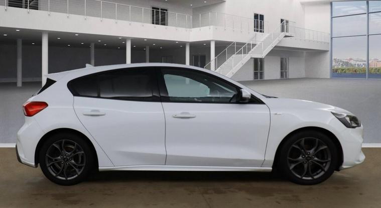 Here we have a Ford Focus 1.0 EB ST Line Hatchback , Ford Service History , Sat Nav , Rear Parking Sensors , Air Con , Space Saver Spare Wheel , 17 Alloy Wheels , Privacy Glass , Rear Spoiler , Blue Tooth , DAB , Apple Car Play , Android , Cruise Control , Privacy Glass ,