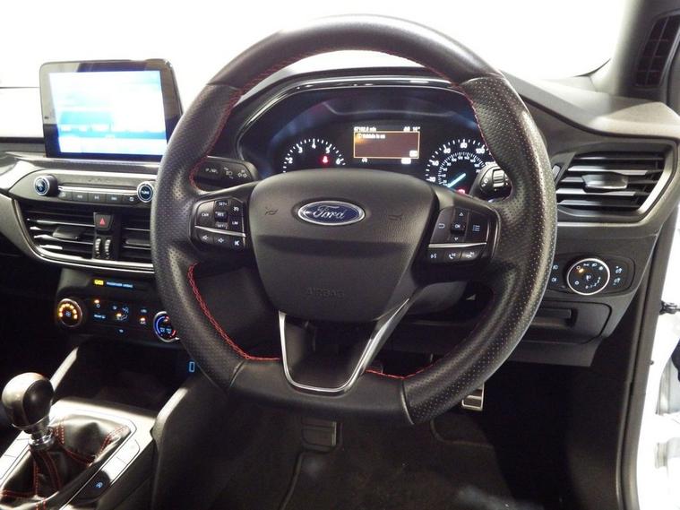 This 2019 Ford Focus ST-Line is presented with a clear vehicle history, offering you peace of mind. This particular model features a 1.0 litre petrol engine and meets Euro 6 emissions standards. Inside, youll find manual air conditioning for your comfort, alongside Ford SYNC with an 8 inch TFT touchscreen that seamlessly integrates with both Android Auto and Apple CarPlay. The headlights are also automatic, turning on and off as needed. The Ford Focus ST-Line is designed to impress, with its 0-60mph acceleration achieved in just 10.0 seconds, demonstrating its responsive performance. This model also benefits from low CO2 emissions, indicating a more efficient and environmentally conscious drive compared to many other vehicles in its class.