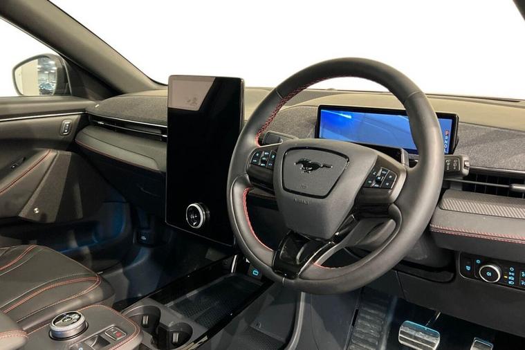 With an incredibly low mileage of just 6207 miles for its 2024 registration, this Ford Mustang Mach-E Extended Range Premium presents a superb ownership opportunity. As a single owner vehicle with an MOT valid until October 2027 and a clear vehicle history check, its provenance is impeccable. This electric model boasts a substantial 99 kWh battery, offering a maximum range of 372 miles when new. Inside, youll find a wealth of technology and comfort, including a heated steering wheel, BLIS blind spot information system with cross traffic alert, and a rear view camera for effortless parking. The adaptive LED Mustang signature headlamps provide excellent visibility, while the Ford Sync 4A system, featuring a 15.5 inch touchscreen, seamlessly integrates Android Auto and Apple CarPlay. The performance of this Mustang Mach-E is truly impressive, with an acceleration of 0-60mph achieved in a swift 5.6 seconds, demonstrating its dynamic capability. The extended range battery, offering up to 372 miles on a full charge, sets it apart from many other electric vehicles, providing confidence for longer journeys. Recharging is convenient, with a full charge at home taking approximately 14 hours and 36 minutes using a 7kW charger, and a rapid public charge from empty to 80% achievable in just 51 minutes. These highlights underscore the advanced engineering and practical benefits that make this Ford Mustang Mach-E a compelling choice for those seeking an exceptional electric driving experience.