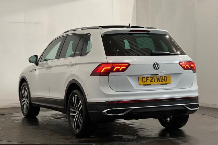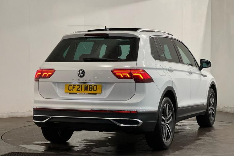 This 2021 Volkswagen Tiguan TSI Elegance offers peace of mind with an MOT valid until February 2026 and a clear vehicle history check. This stylish SUV is powered by a 1.5 litre Euro 6 compliant petrol engine, delivering a smooth and efficient drive. Keyless entry and start, along with a full electric tailgate, add convenience to your daily journeys. Inside, youll find the Ready 2 Discover infotainment system with Bluetooth connectivity, while the IQ Light LED Matrix headlights provide excellent visibility. Experience the open air with the panoramic sunroof, and make parking effortless with the integrated rear view camera. The Tiguan boasts a generous boot space, perfect for all your luggage and shopping needs. With an acceleration of 0 to 60 miles per hour in just 9.2 seconds, this Tiguan offers a responsive performance that sets it apart from other vehicles in its class.