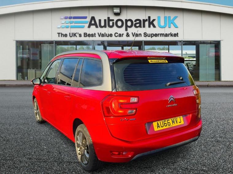 Boasting exceptionally low mileage for its age, this 2016 Citroen Grand C4 Picasso BlueHDi Exclusive has been well cared for by its two former keepers and has a fantatsic service history with the most recent carried out at 45K. The C4 is a remarkable find. This 7 seater MPV is powered by an efficient 1.6L Diesel engine and meets the Euro 6 emission class you can drive with confidence. The Exclusive trim level ensures a well equipped experience, featuring automatic headlights, dual zone climate control for personalised comfort, and both front and rear parking sensors with parking assistance to make manoeuvring a breeze. Stay connected on the go with the integrated Bluetooth system. This Grand C4 Picasso offers impressive fuel economy, achieving an outstanding 69 mpg, which is a significant advantage over many other vehicles in its class. Its low CO2 emissions further contribute to its economical running costs. With only 50000 miles on the clock, this vehicle represents excellent value, offering a spacious and comfortable journey for families or anyone needing versatile seating.