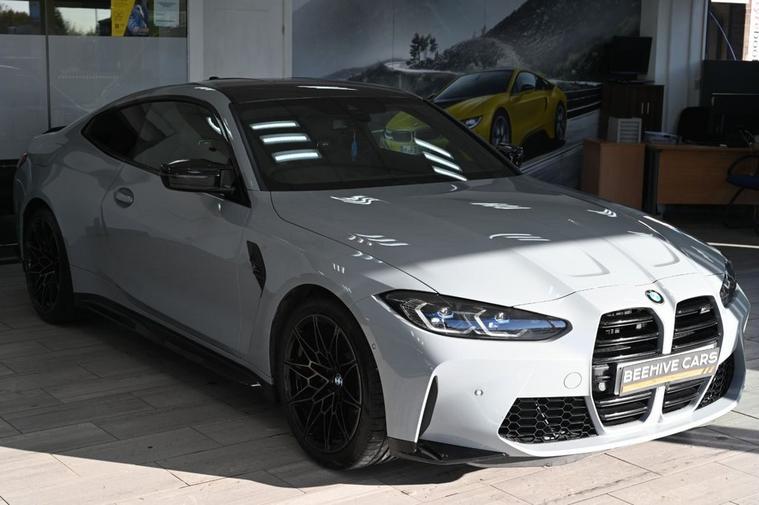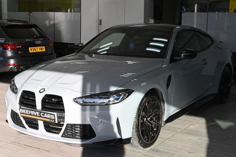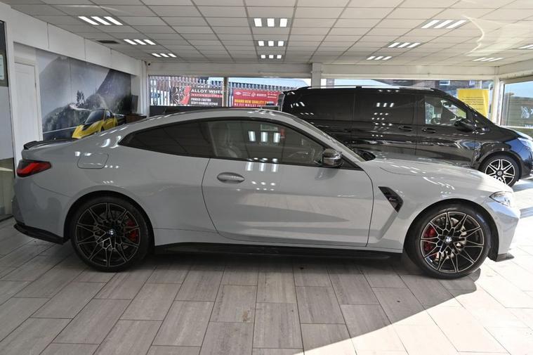 BUY ONLINE CLICK AND COLLECT OR FREE HOME DELIVERY ANYWHERE IN THE UK MAINLAND PART EX WELCOME FINANCE CAN BE ARRANGED **7 DAY MONEY BACK GUARANTEE** Bmw m4 bi-turbo competition coupe steptronic automatic in metallic brooklyn grey with 2 keys and service history its features are head up display reverse colour camera FRONT END PPF sat nav dab radio media usb connected drive harmon kardon surround sound black m4 leather seats with armrest heated front seats driver memory seat electric seats electric folding door mirrors front and rear parking aid sensors xenon lights m4-steering wheel f1 style paddleshifts heated steering wheel sport plus modes push button start stop bmw bodystyling kit alloy wheels privacy glass