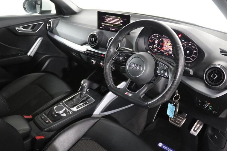 This well maintained Audi Q2 S Line finished in Ibis White looks fantastic complemented by 18 inch Alloy Wheels, S Line Body Styling and LED Headlights. Find your way with integrated SATELLITE NAVIGATION with Pop Up LCD Display. Keep connected with Audi Smart Phone Interface with APPLE CARPLAY and ANDROID AUTO. Park in ease with REAR PARKING SENSORS. Keep connected with BLUETOOTH phone system. Listen to your music through DAB Digital Radio and Audi Music Interface. Comfortable to drive with AIR CONDITIONING and CRUISE CONTROL. Sit in luxury with 1/2 LEATHER Upholstery and Sports S Line Seats. Well equipped with POWER TAILGATE, Power-Folding Mirrors, Auto Headlights and Rain-Activated Wipers. Also fitted with Multifunctional Paddle Shifting Flat Bottomed Steering Wheel, ISOFIX Seats, Audi Drive Select, Alarm, Immobiliser and Remote Door Locking with 2 x keys. Buy in confidence with FULL SERVICE HISTORY with 5 x Documented Services.