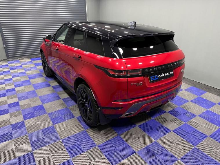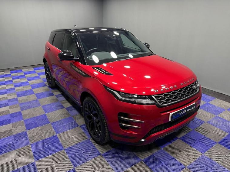 AJC Car Sales presents this stunning LAND ROVER RANGE ROVER EVOQUE 2.0 P200 MHEV R-Dynamic S SUV 5dr Petrol Auto 4WD Euro 6 (s/s) (200 ps) finished off in Firenze Red with 20 Black Alloy Wheels, Two Keys and a Great Service Record. Experience refined capability and modern luxury with this 2019 Range Rover Evoque 2.0 P200 MHEV R-Dynamic S, a stylish and technologically advanced SUV designed for drivers who demand sophistication, performance, and versatility. Powered by a 2.0-litre petrol mild-hybrid engine producing 200 PS, this Evoque delivers smooth, responsive acceleration while maintaining impressive efficiency under the Euro 6 emissions standard. Equipped with an 8-speed automatic transmission and intelligent 4WD, the Evoque ensures confident handling in all conditions, whether navigating city streets or tackling challenging terrain. The R-Dynamic S trim adds a sporty edge with distinctive exterior styling cues, premium interior touches, and enhanced driver-focused features. Inside, the cabin offers a refined and contemporary environment, complete with high-quality materials, ergonomic seating, and advanced technology that includes intuitive infotainment, driver assistance systems, and seamless connectivity. Practicality meets elegance with a spacious 5-door design, making this Evoque an ideal choice for everyday driving and weekend adventures alike.