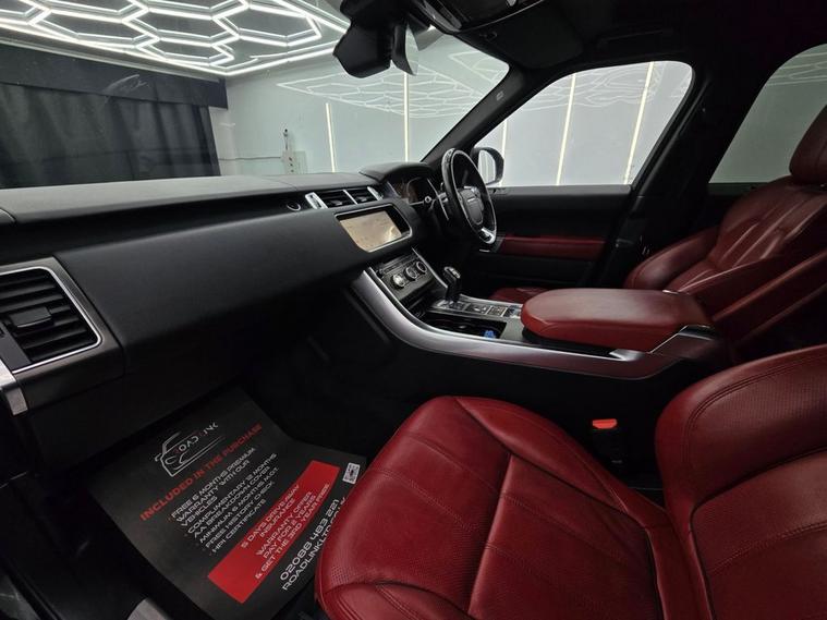 Experience commanding luxury in this Range Rover Sport, defined by dynamic body styling, 21 alloys, gloss-black detailing and red painted brake calipers. Enjoy exceptional comfort with heated front and rear seats, 2-zone climate control, illuminated tread plates and refined interior mood lighting. Advanced technology including a TFT virtual instrument panel, Hard Disk Navigation and InControl Apps keeps every journey seamlessly connected. Take control with Adaptive Dynamics, Terrain Response 2, All-Terrain Progress Control and four-corner electronic air suspension for unstoppable capability. Safety comes first with Autonomous Emergency Braking, Lane Departure Warning, Rear View Camera and comprehensive airbag protection. Practical features like gesture tailgate, 60/40 folding rear seats, roller loadspace cover and ISOFIX anchor points enhance everyday versatility. Drive with confidence thanks to torque vectoring, Dynamic Response, Hill Descent Control and a twin-speed transfer box. Premium touches such as keyless entry, a heated windscreen with heated washer jets and power-fold mirrors elevate convenience.