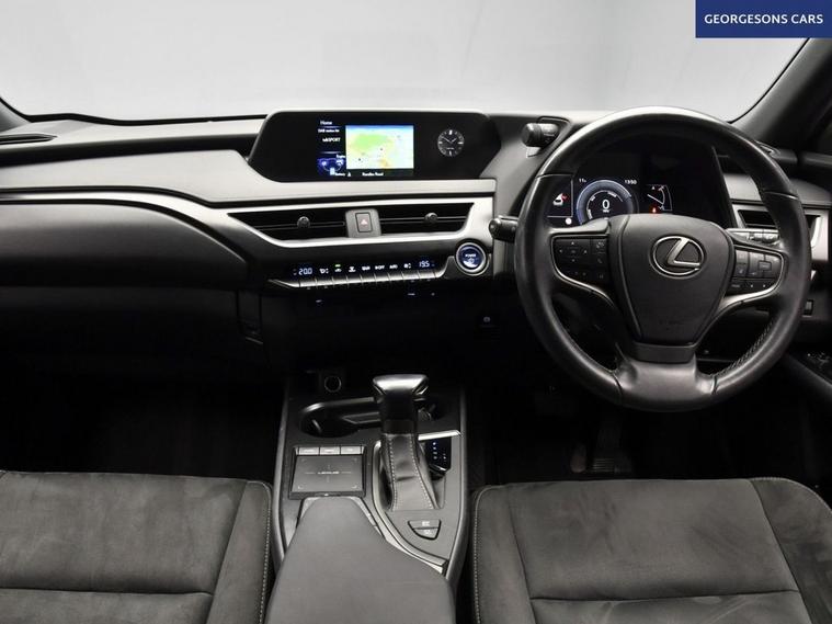 The Lexus UX 250h combines a smooth 2.0-litre self-charging hybrid system with 184hp total output, delivering 0-62mph in 8.5 seconds and up to 53.3mpg in this front-wheel-drive setup with a seamless e-CVT transmission. With one owner and five services (four at Lexus dealers), this UX is in superb condition. Navigate effortlessly with integrated satellite navigation, Apple CarPlay, Bluetooth and DAB radio. Parking is easy with the reverse camera. Stay comfortable with dual-zone climate control. Adaptive cruise control, lane assist, hill assist, selectable drive modes and push-button start deliver refined, stress-free driving every day. The spacious five-door crossover includes a 367-litre boot.