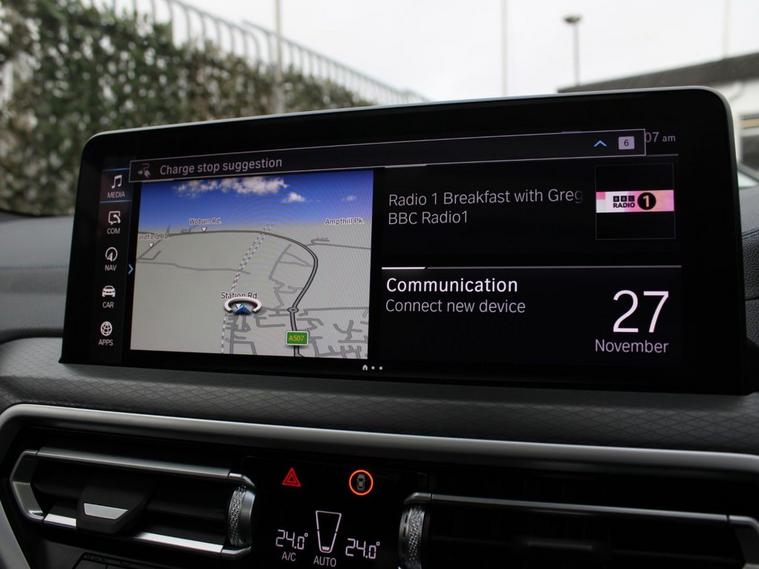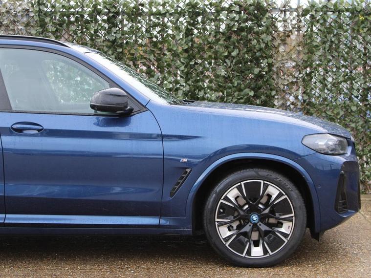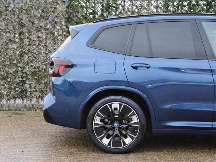 This 2022 BMW iX3 M Sport Pro is a superb example, having had only one owner since new. As an electric vehicle, it offers a smooth and quiet driving experience, powered by an 80 kWh battery that provided a maximum range of 282 miles when new. This impressive range means you can travel further between charges. For convenience, a full charge at home using a 7kW charger takes approximately 11 hours and 20 minutes, while rapid public charging can replenish the battery from empty to 80% in as little as 32 minutes. The M Sport Pro trim level ensures this iX3 is equipped with a host of desirable features. Youll appreciate the BMW Live Cockpit Professional, which includes enhanced Bluetooth connectivity and wireless phone charging, keeping you connected on the go. The Head Up Display projects key information onto the windscreen, allowing you to keep your eyes on the road. Maneuvering is made easier with the Reversing Assist Camera, and the Panoramic Glass Sunroof adds an open and airy feel to the cabin. These features collectively enhance the driving experience, setting this BMW iX3 apart.