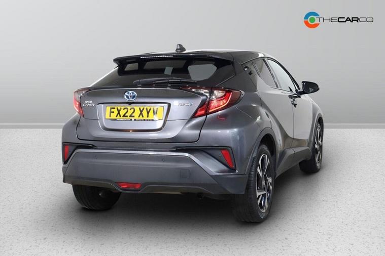 This 2022 Toyota C-HR VVT-h Design is a Euro 6 compliant model, offering an efficient and stylish driving experience. Featuring a 1.8L petrol hybrid engine, this Design trim level is equipped with LED reflector headlights that automatically illuminate, a reversing camera for easier parking, and dual-zone automatic air conditioning to keep all occupants comfortable. Smartphone integration is seamless with Apple CarPlay and Android Auto, allowing you to connect your device for navigation and entertainment on the go. The Toyota C-HR VVT-h Design stands out with its impressive fuel economy, achieving a highlight of 58 miles per gallon, which indicates it is more economical than many similar vehicles. Furthermore, its low CO2 emissions and low insurance group highlight its cost effectiveness, making it a sensible choice for many drivers.