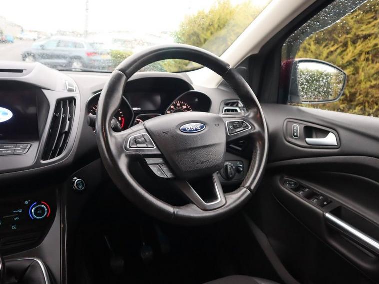 This 2017 Ford Kuga TDCi Titanium has been well cared for by its one former keeper and has a fantastic service history with the most recent carried out at 41K. The Kuga presents an exceptional opportunity with its remarkably low mileage of just 46, 000 miles. This Euro 6 compliant 1.5L diesel model, finished in the popular Titanium trim, offers a compelling blend of efficiency and practicality. It comes equipped with rear parking sensors to aid manoeuvring, automatic halogen headlights with distinctive LED daytime running lights, and a Ford DAB Navigation System featuring Ford SYNC3 with Bluetooth connectivity for seamless integration of your devices. Inside, you will appreciate the comfort provided by the DEATC dual-zone electronic automatic temperature control, ensuring a pleasant cabin environment for all occupants, and the convenience of keyless entry. The highlights of this Ford Kuga demonstrate its superior value compared to other vehicles in its class. Achieving an impressive fuel economy of 64 mpg, it offers significant savings on running costs. Furthermore, its low CO2 emissions contribute to a more environmentally friendly drive, and its placement in a low insurance group makes it an economical choice for many drivers. With an MOT valid until March 2026, this Kuga is ready for many miles of reliable service.